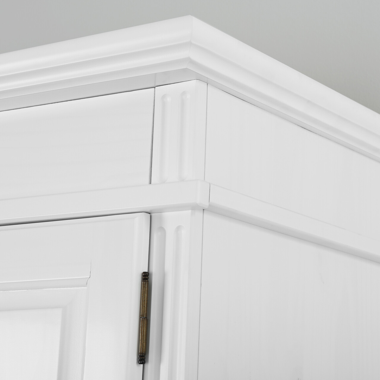 Dulapul este realizat din lemn masiv de pin (pin parfumat) si vopsit in alb. Fibra lemnului este inca usor vizibila, evidentiind caracterul natural al lemnului. Lemnul de plantatie sustenabil, ecologic si organic ofera caldura, confort si o atmosfera primitoare. Experimentati senzatia pura a lemnului natural autentic.