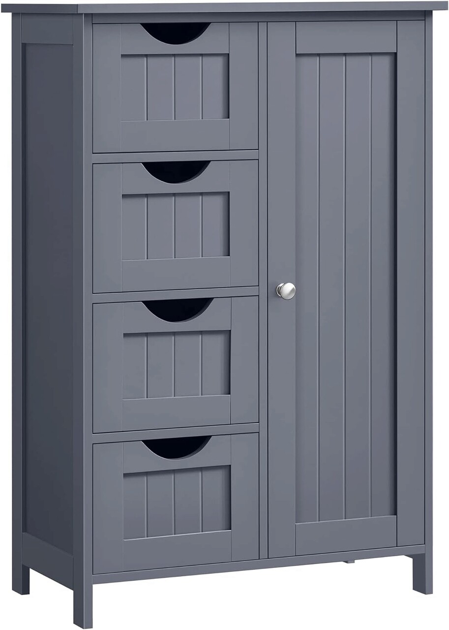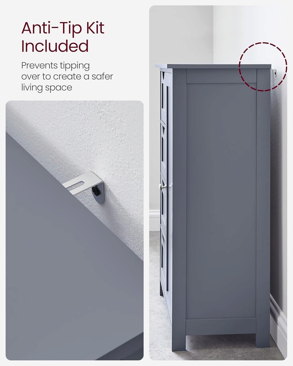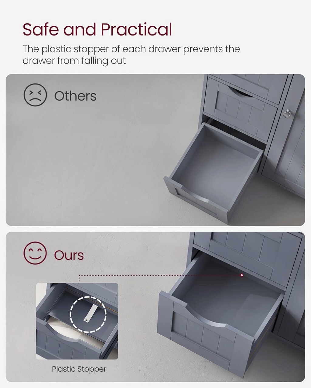 Dulap de baie cu 3 sertare si raft ajustabil, Vasagle, 55x30x82 cm, MDF, gri inchis