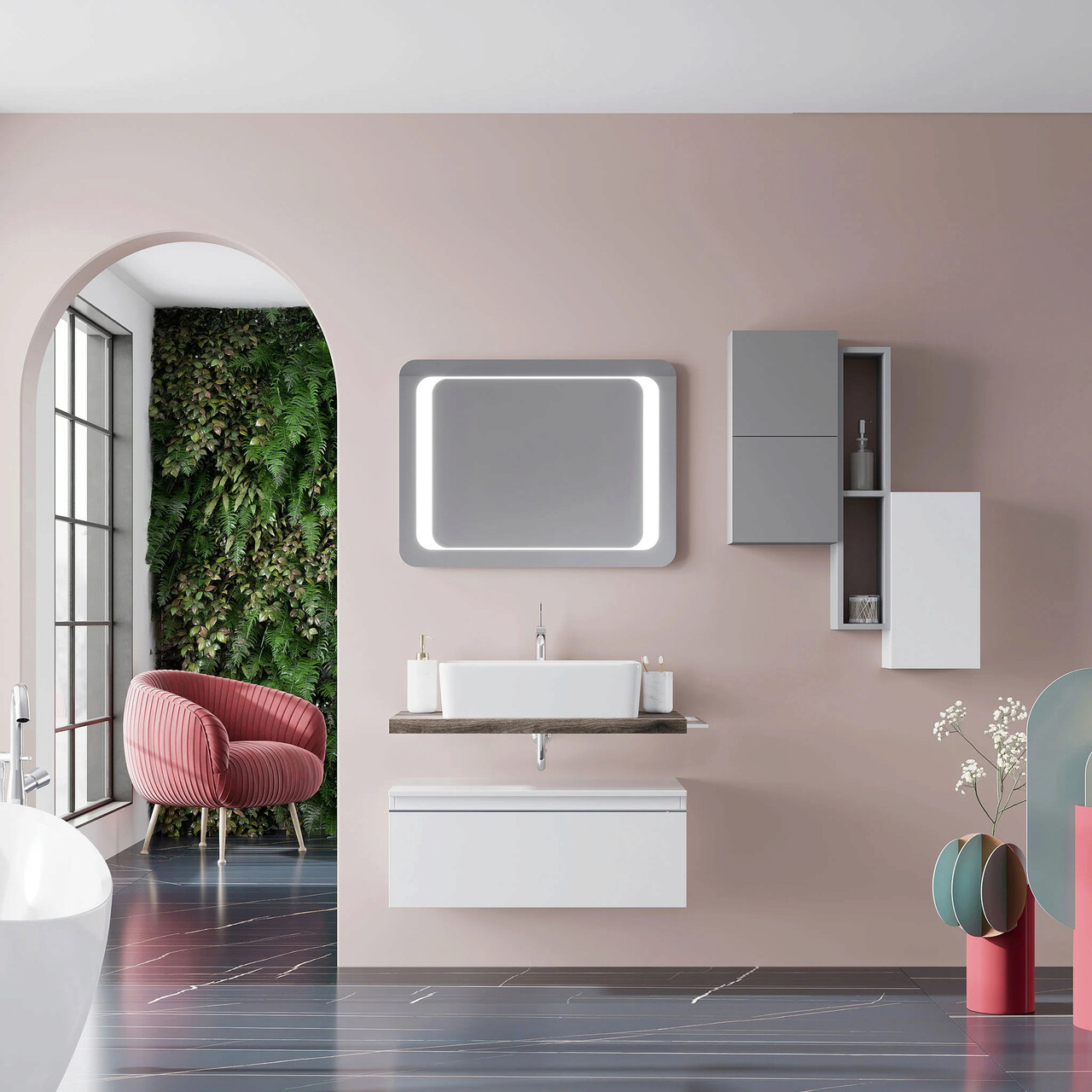 Realizat in totalitate din lemn laminat iar finisajul gri contribuie la aspectul frumos al acestuia. Dulapul are o mica polita pe care sa va puneti cateva lucruri de igiena personala.