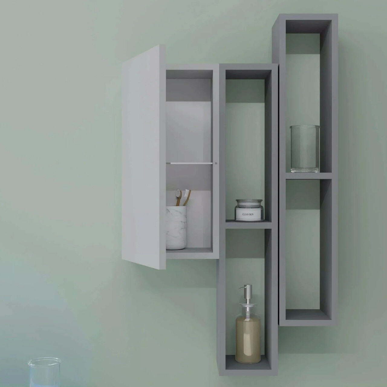 Dulap de baie fara usa Athena, 15x15x80 cm, lemn laminat, gri
