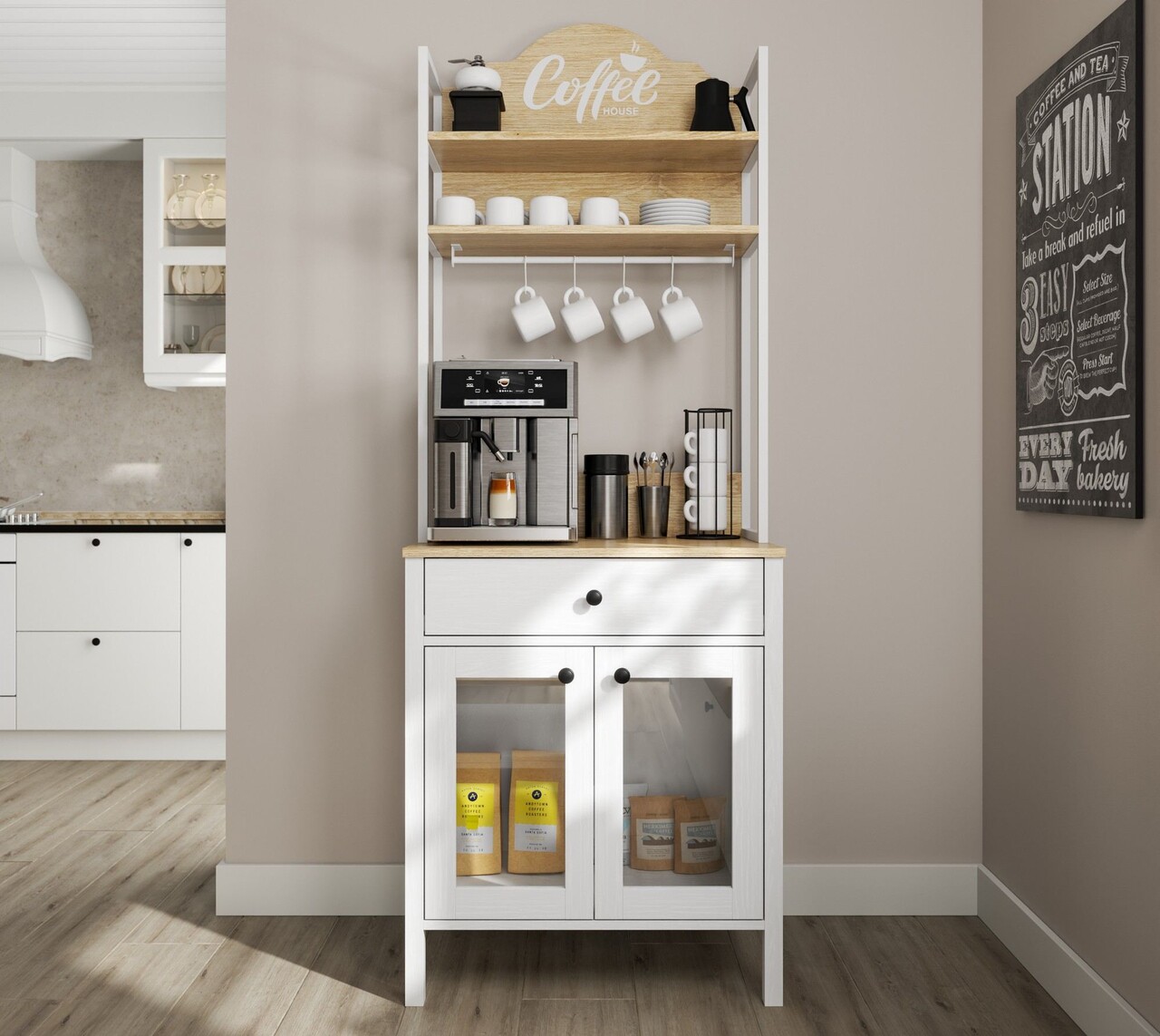 Dulap de bar pentru cafea, Cordelia, FRN-20076-1, 75x210x50 cm, PAL, Maro/Alb