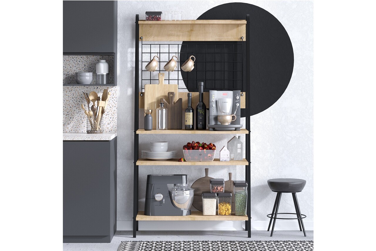 Dulap de bar pentru cafea, Elegance, Barista, 84x170x40 cm, PAL, Stejar safir / negru