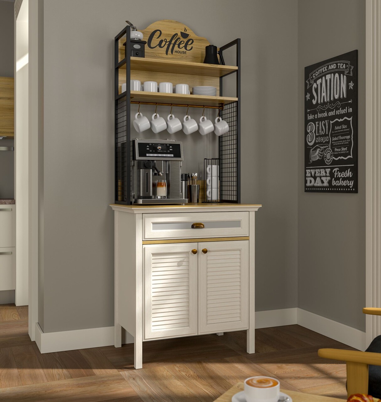 Dulap de bar pentru cafea, Hanah Home, FRN-21028, 80.4x210x52.1 cm, PAL, Crem / Stejar / Negru