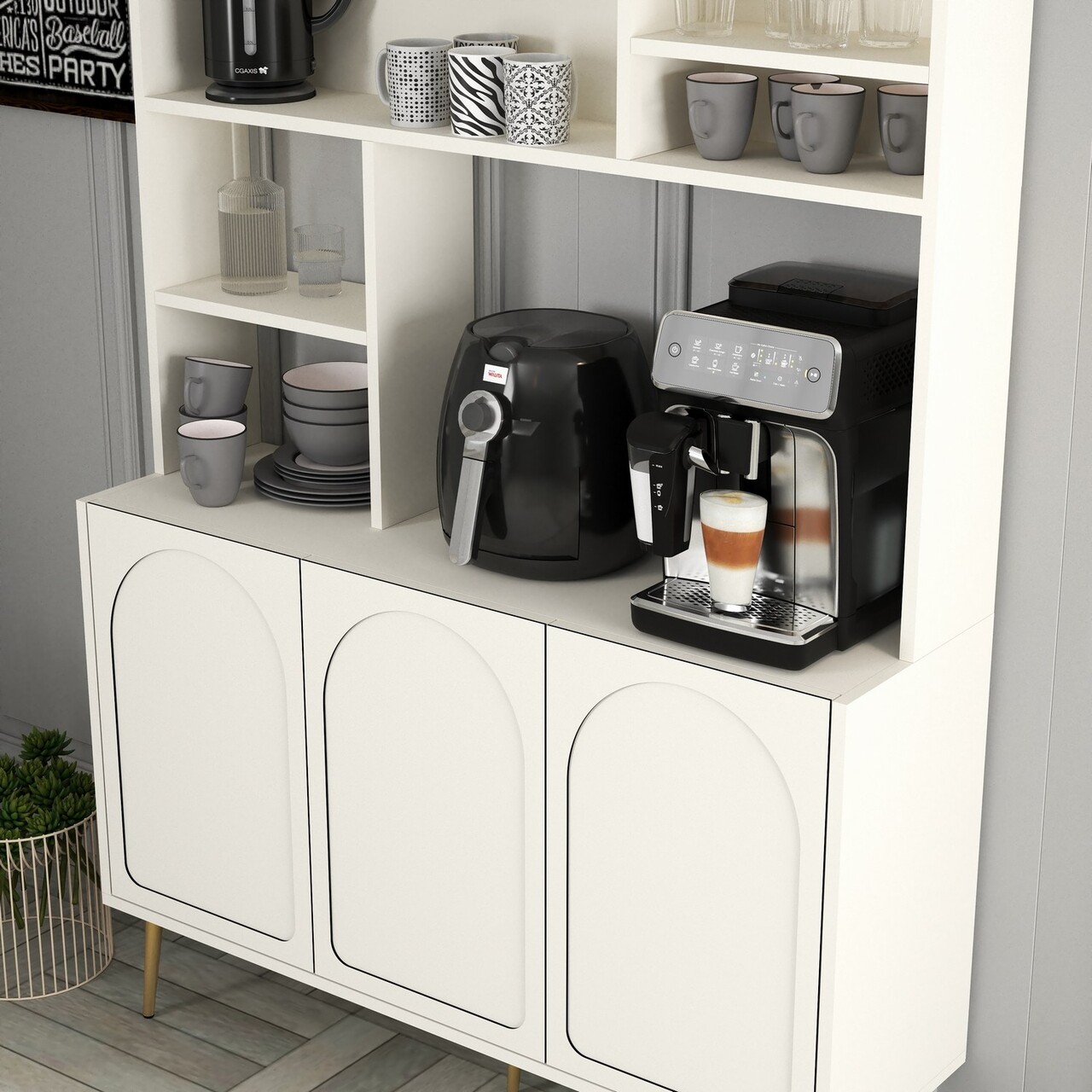 Dulap de bar pentru cafea, Hommy Craft, Lyon 120, 120x202x35 cm, PAL, Crem / Aur
