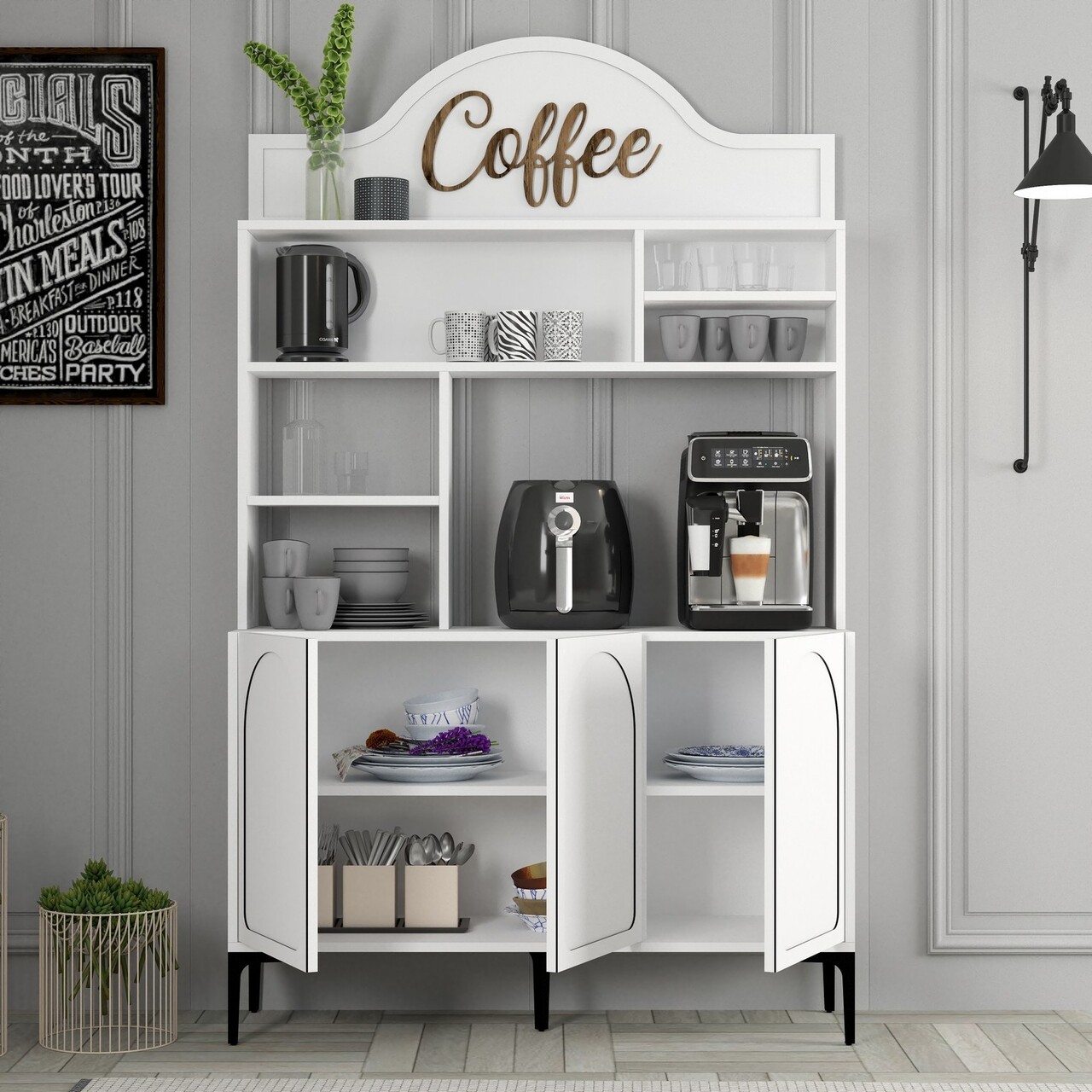 Dulap de bar pentru cafea, Hommy Craft, Lyon 120, 120x202x35 cm, PAL, Alb/Negru