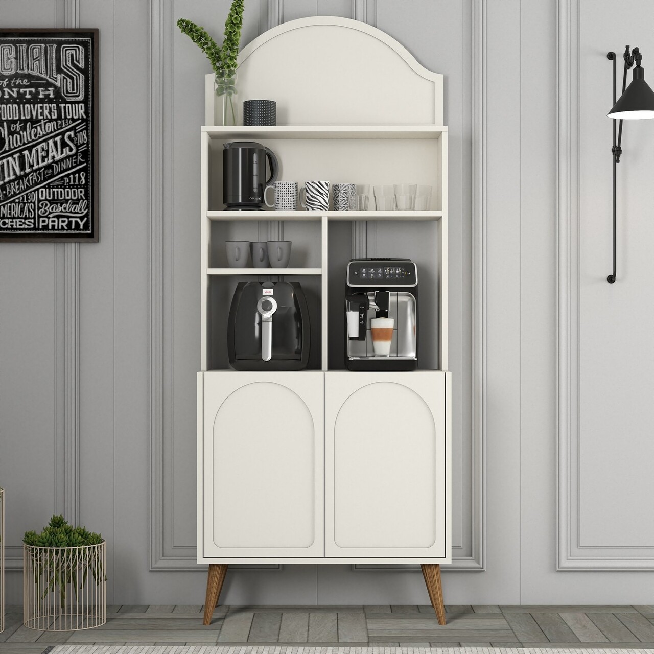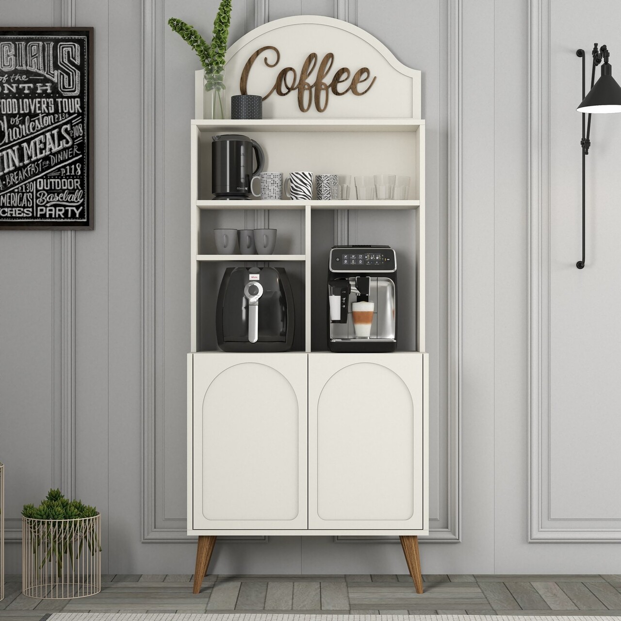 Dulap de bar pentru cafea, Hommy Craft, Lyon 80, PAL, Crema/Nuca