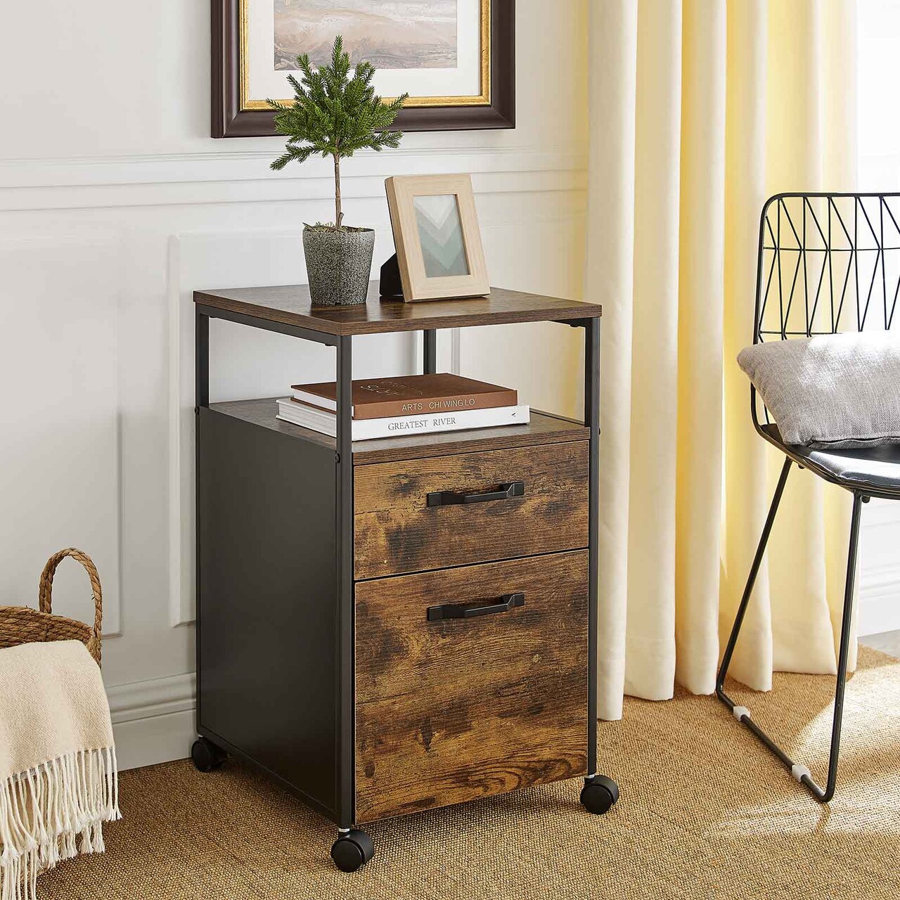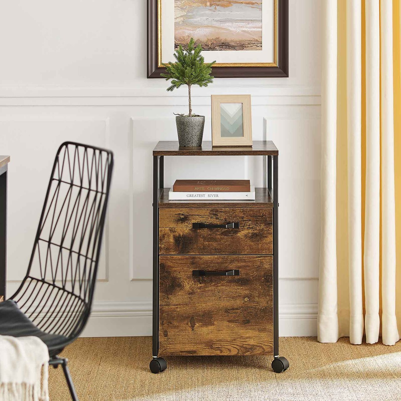 Dulap de birou pentru dosare, Vasagle, cu compartiment A4 si letter, 41x45x66 cm, MDF/PAL/otel, maro rustic