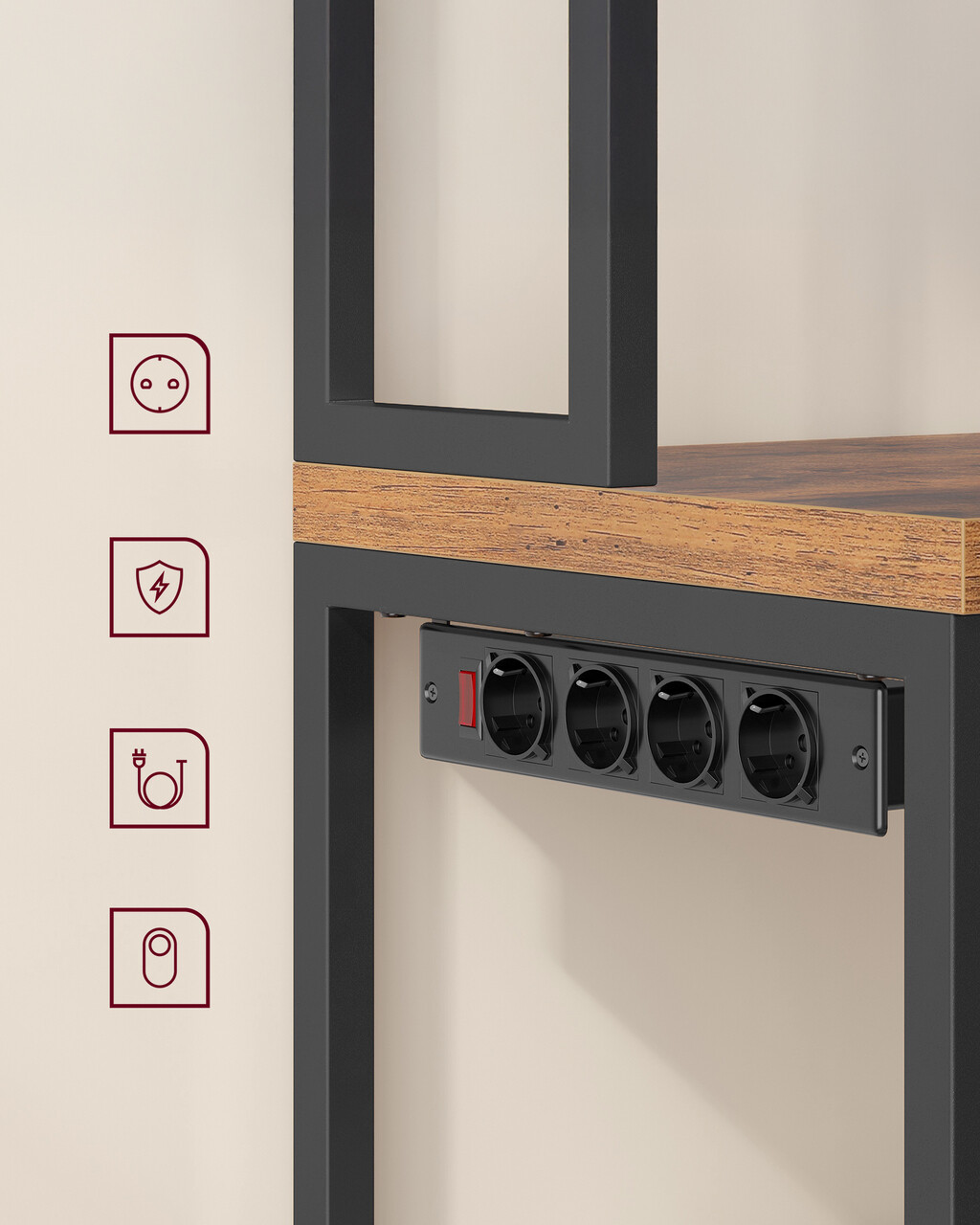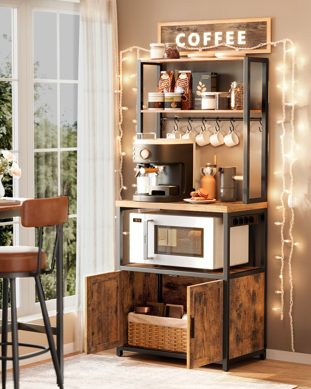 Dulap de bucatarie Coffee Bar, Vasagle, cu priza integrata, 60x40x170 cm, PAL/otel, gri carbune
