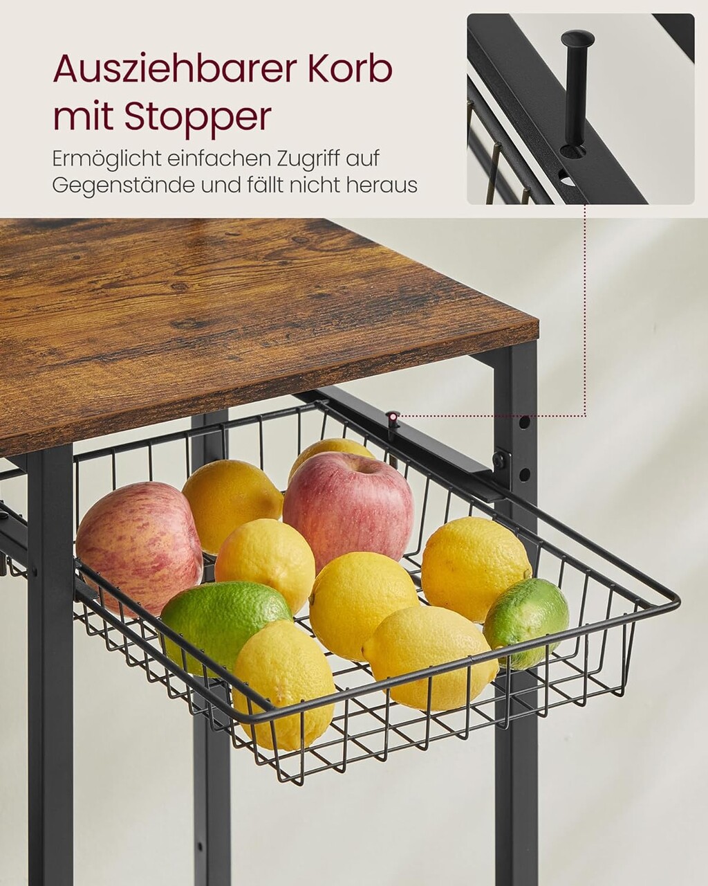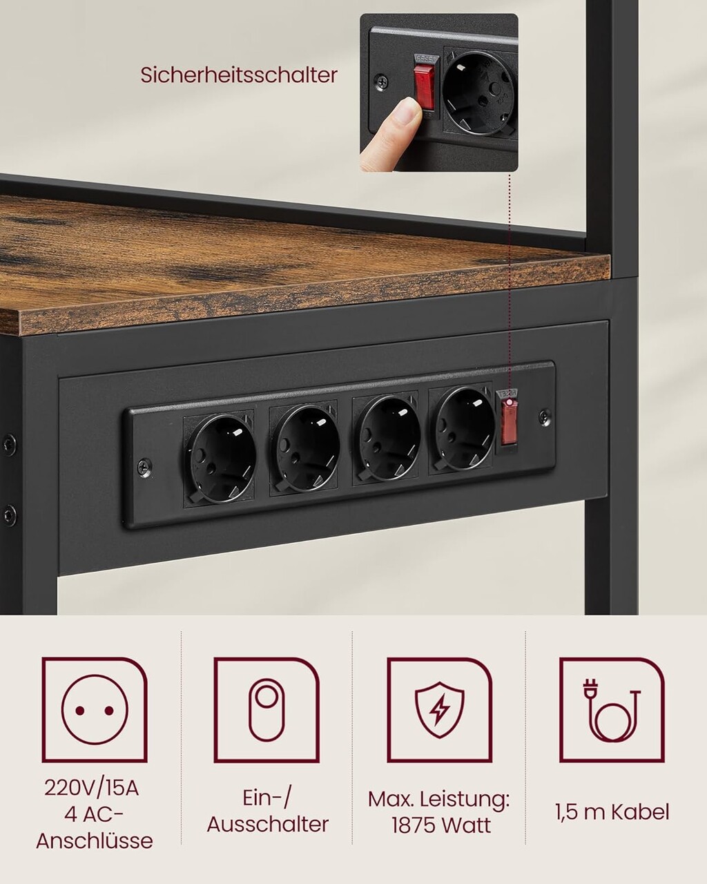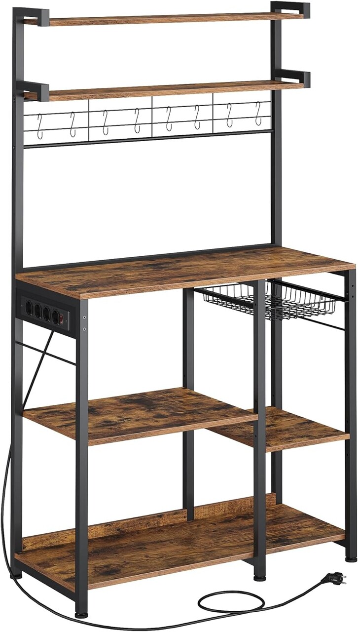 Dulap de bucatarie cu priza, Vasagle, 90x40x165.5 cm, PAL/otel, maro rustic