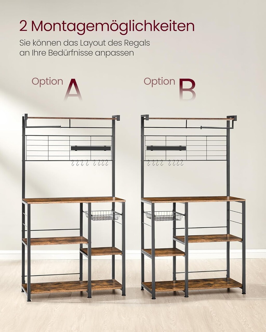 2 optiuni de montare Piesele marcate si instructiunile usor de urmat va ajuta sa asamblati acest dulap de bucatarie fara efort. Puteti atasa raftul mic, suportul pentru hartie de bucatarie si sina pentru cutite pe stanga sau pe dreapta.