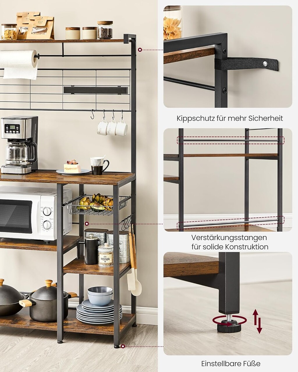 Stabil si sigur Datorita PAL-ului de inalta calitate si a cadrului robust din otel, raftul pentru microunde este solid si stabil. Protectia la inclinare inclusa creeaza un mediu de utilizare sigur.