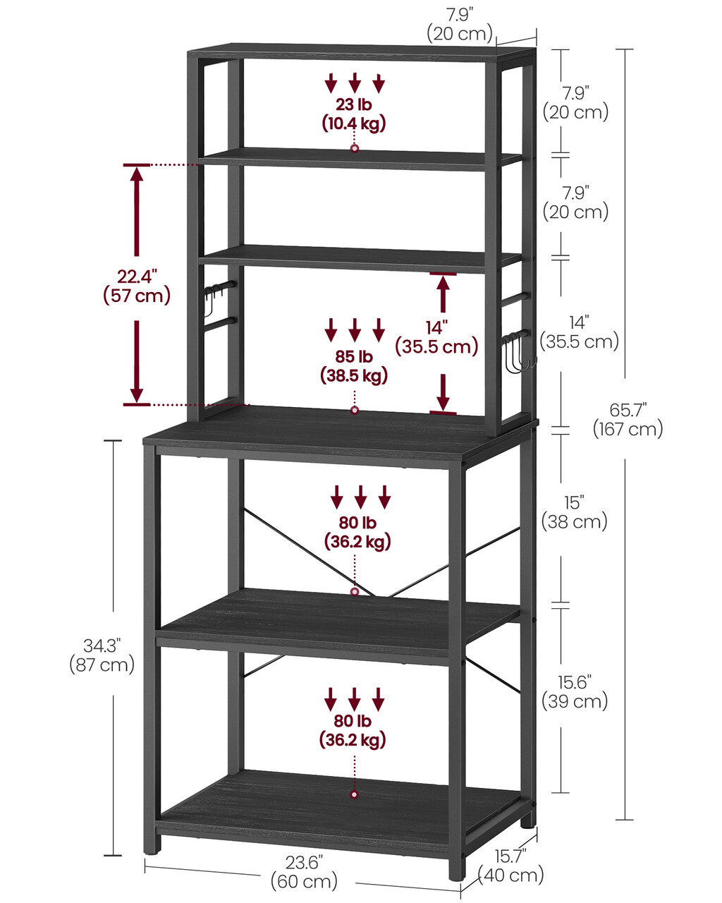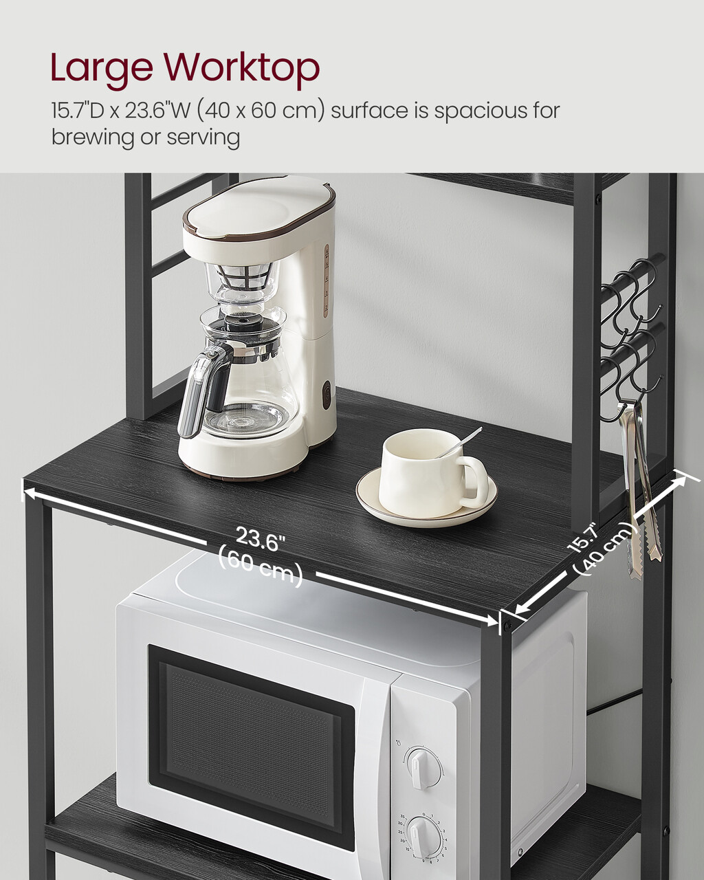 Perfect pentru spatii mici: Cu dimensiunile de 40 x 60 x 167 cm, acest raft de bucatarie cu 6 niveluri este ideal pentru bucatarii compacte sau poate fi folosit ca mini coffee bar pentru prepararea cafelei.