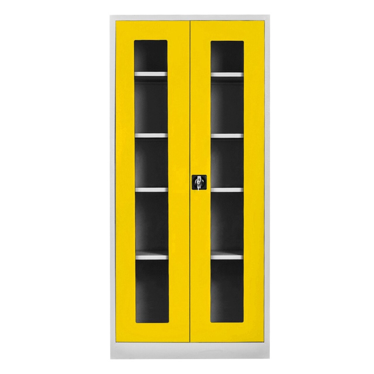 Dulap de depozitare cu incuietoare, Shelvoria, Js1005Sa, 92x198x40 cm, Otel, Gri / Galben