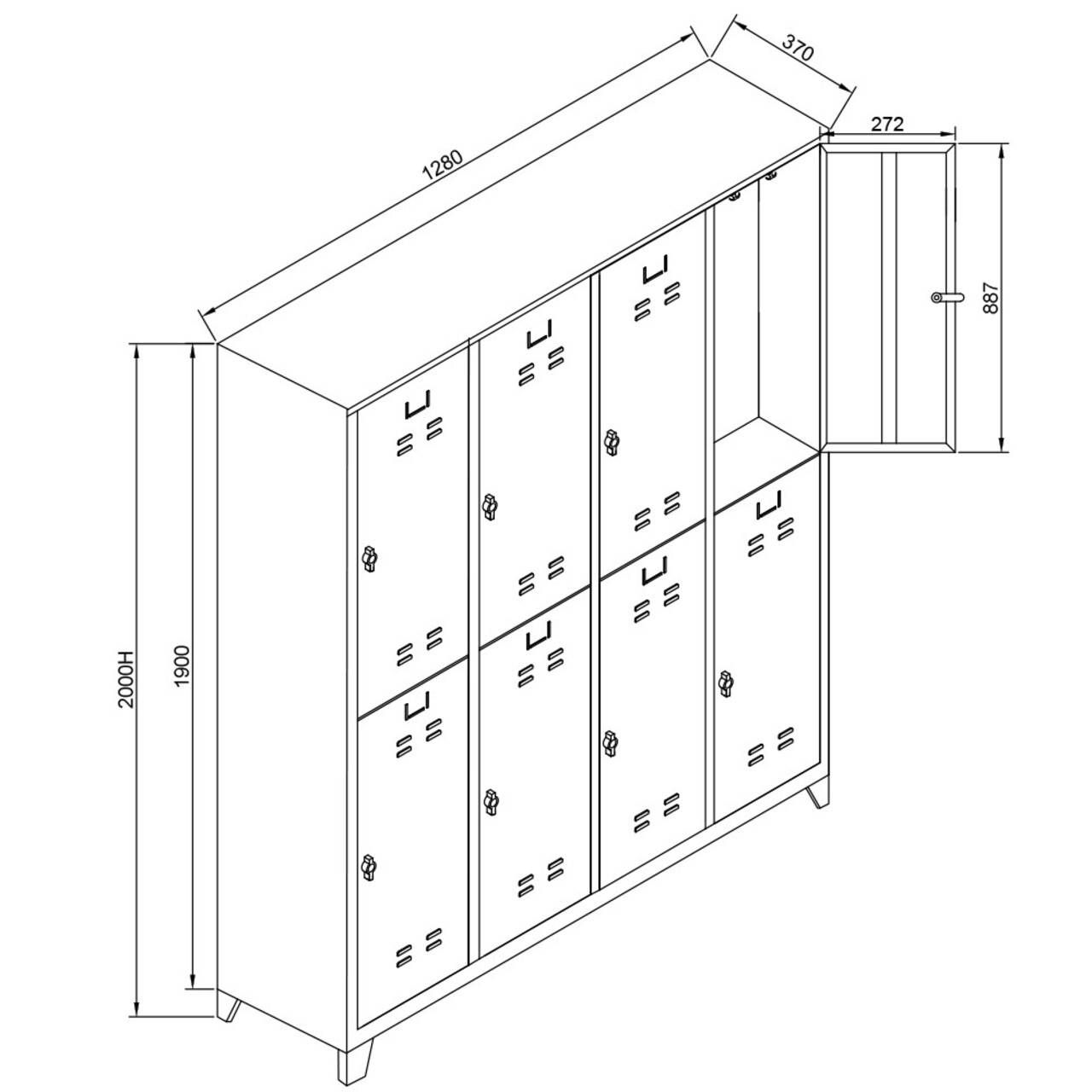 Dulap de depozitare cu incuietoare, Shelvoria, Js1030Tu, 128x200x37 cm, Otel, Gri / Portocaliu