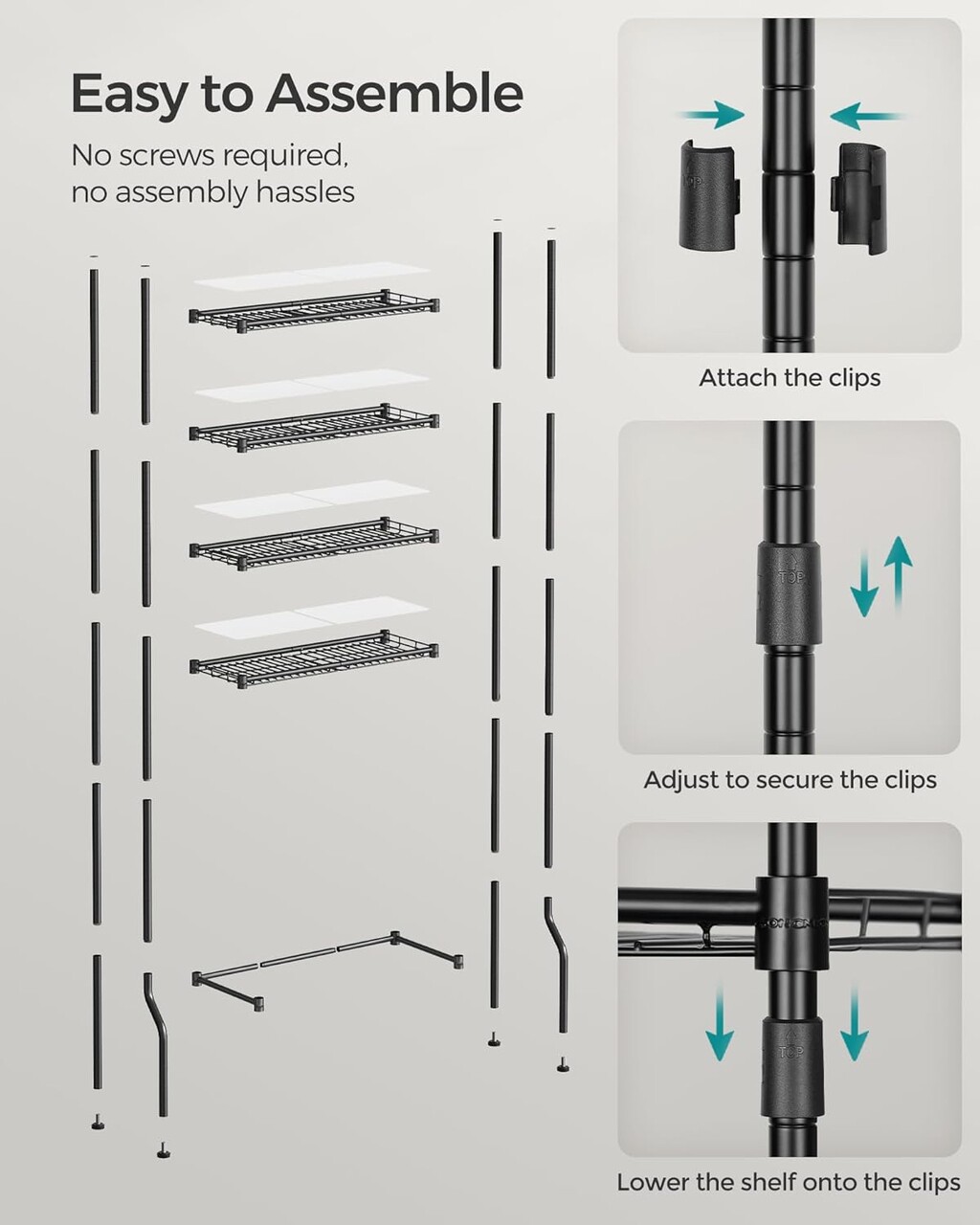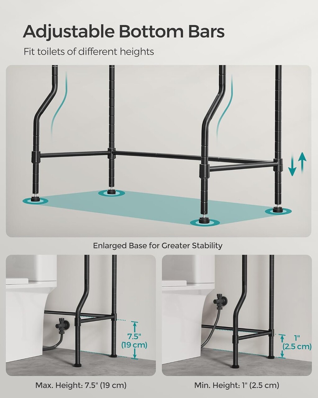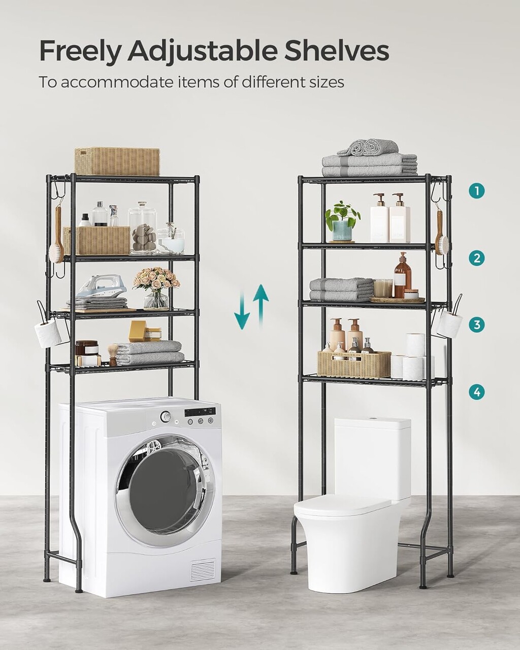 Inaltimi adaptabile ale rafturilor Cu 4 rafturi ajustabile, acest raft de depozitare pentru baie este perfect pentru depozitarea articolelor de inaltimi diferite, de la sticle de sampon la prosoape, raspunzand nevoilor dvs. unice de depozitare.