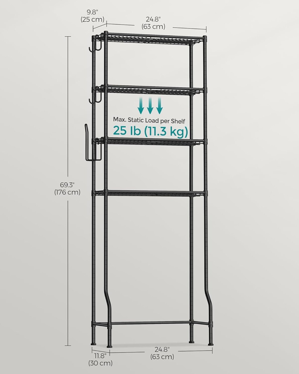 Dulap deasupra vasului de toaleta, Songmics, 83x30x176 cm, otel, negru