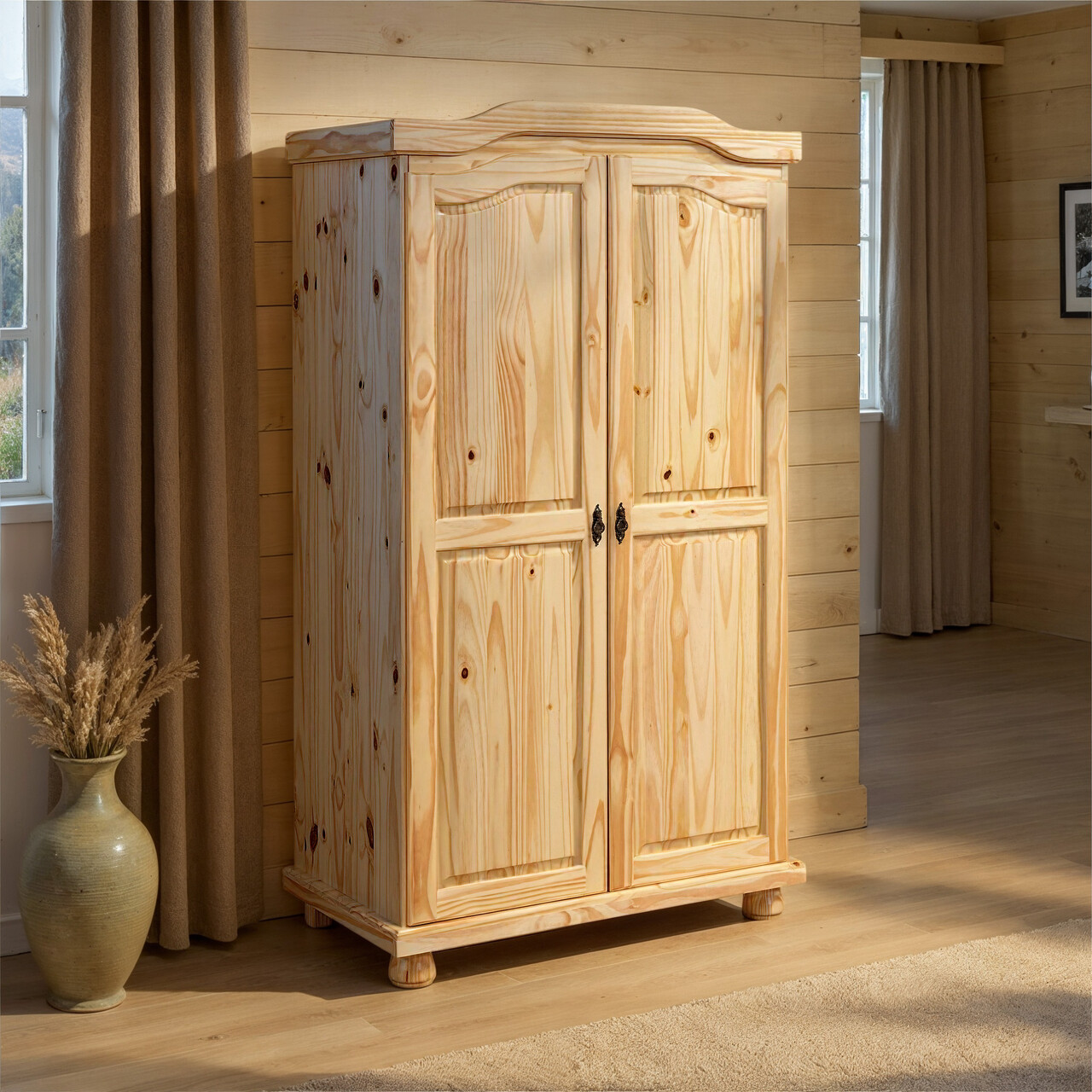 Pentru toti fanii stilului rustic natural, dulapul Geneva cu finisaj transparent este alegerea perfecta. Acest dulap emana o atmosfera confortabila si familiara si se potriveste perfect in orice dormitor sau living. Dulapul Geneva atrage cu adevarat atentia si ofera un spatiu amplu de depozitare pentru hainele dumneavoastra. O suprafata transparenta accentueaza caracterul natural al lemnului acestui dulap cu doua usi. Cele cinci rafturi si bara de haine ofera mult spatiu de agatare si pliere - exista cu adevarat loc pentru orice! Aceasta piesa de mobilier din lemn masiv nu numai ca se mandreste cu o calitate inalta, promitand o durata lunga de viata, dar este si fabricata din materiale ecologice.