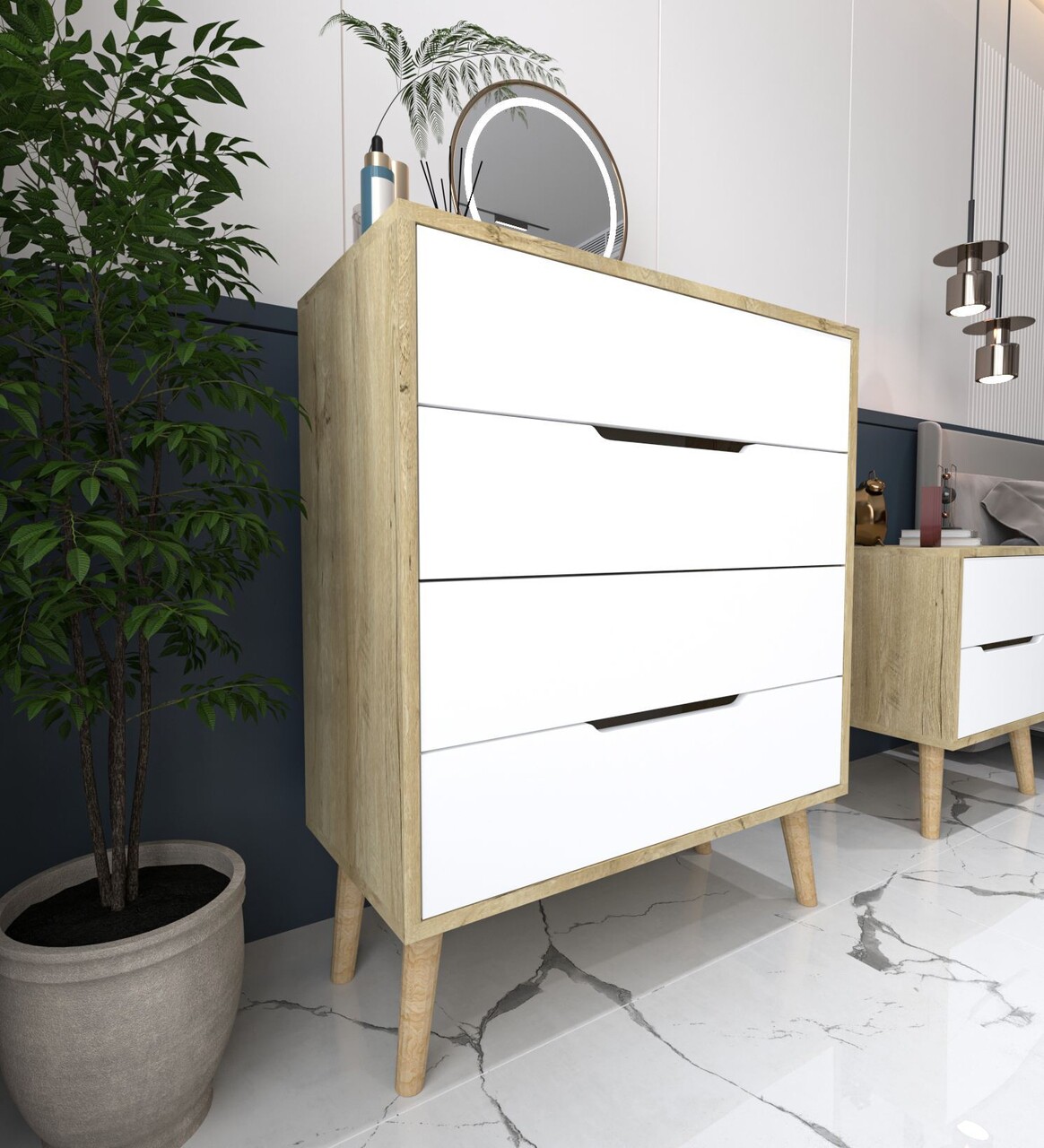 Dulap, Hanah Home, Flora, 78x95x45 cm, PAL, Stejar Safir / Alb