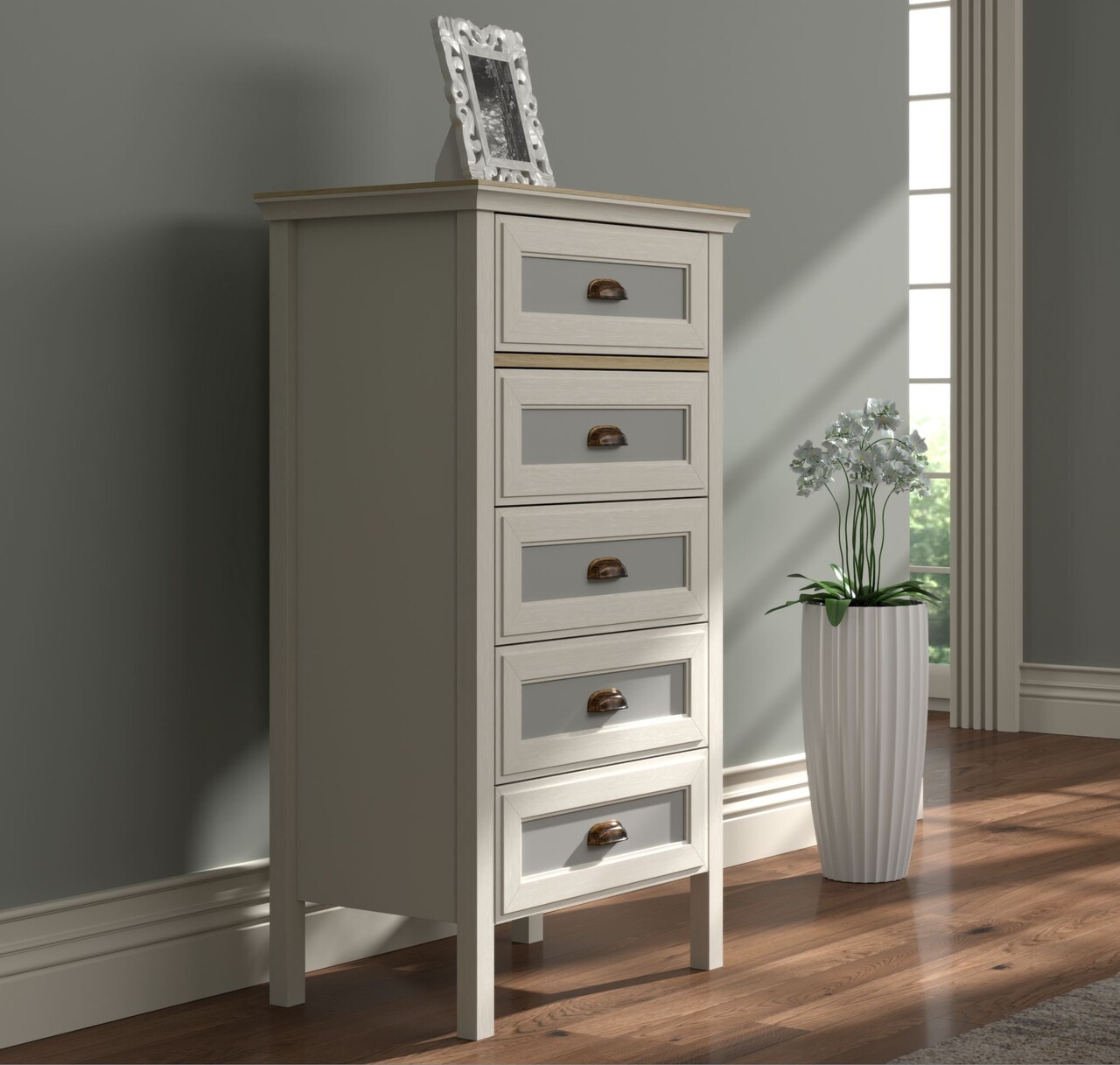 Dulap, Hanah Home, FRN-21031, 63.4x116x42.1 cm, PAL, Crem / Stejar / Gri