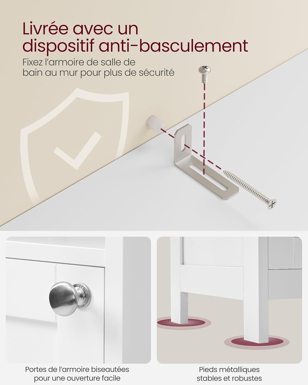 Usor de curatat, sigur de folosit – MDF lacuit de calitate superioara si sistem de prindere in perete pentru siguranta.