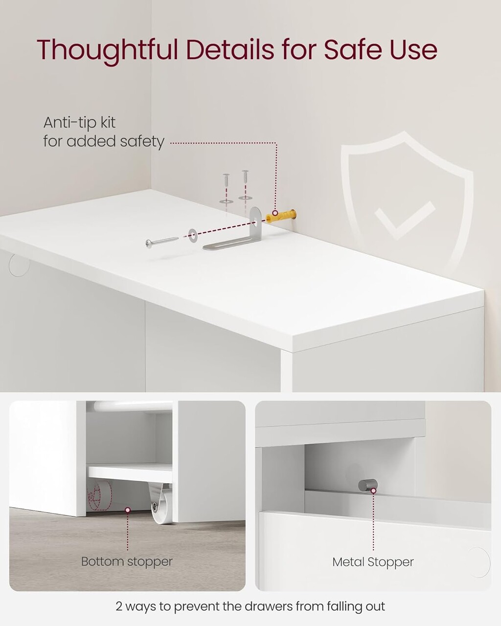 Robust si stabil Construit din MDF de calitate, acest dulap ingust de depozitare pentru baie se mandreste cu o mare rezistenta si stabilitate, oferind articolelor dvs. un suport fiabil. Kitul anti-inclinare inclus sporeste si mai mult stabilitatea generala.