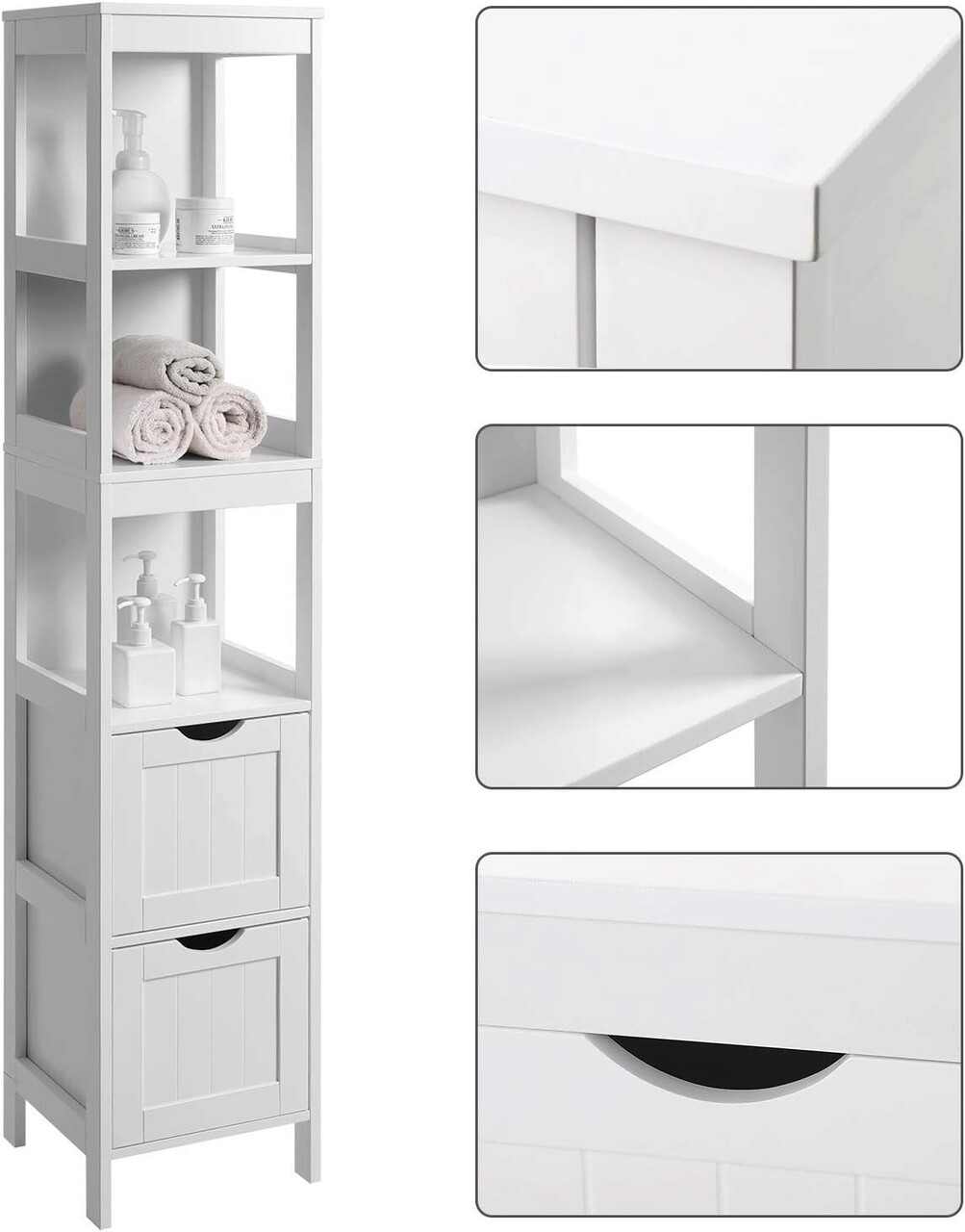 Spatiu pentru a ascunde si a expune: Acest dulap de baie dispune de 2 sertare care va ajuta sa ascundeti articolele de toaleta suplimentare pentru un aspect ingrijit si 3 rafturi deschise pentru obiectele utilizate frecvent sau decoratiunile pe care doriti sa le expuneti.