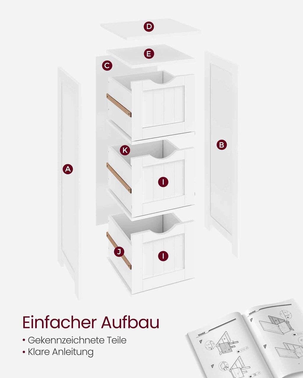 Ideal pentru spatii mici – Cu dimensiuni compacte (32 x 30 x 81 cm), dulapul poate fi integrat cu usurinta intre alte piese de mobilier sau in colturi inguste, economisind spatiu fara sa renunti la functionalitate.