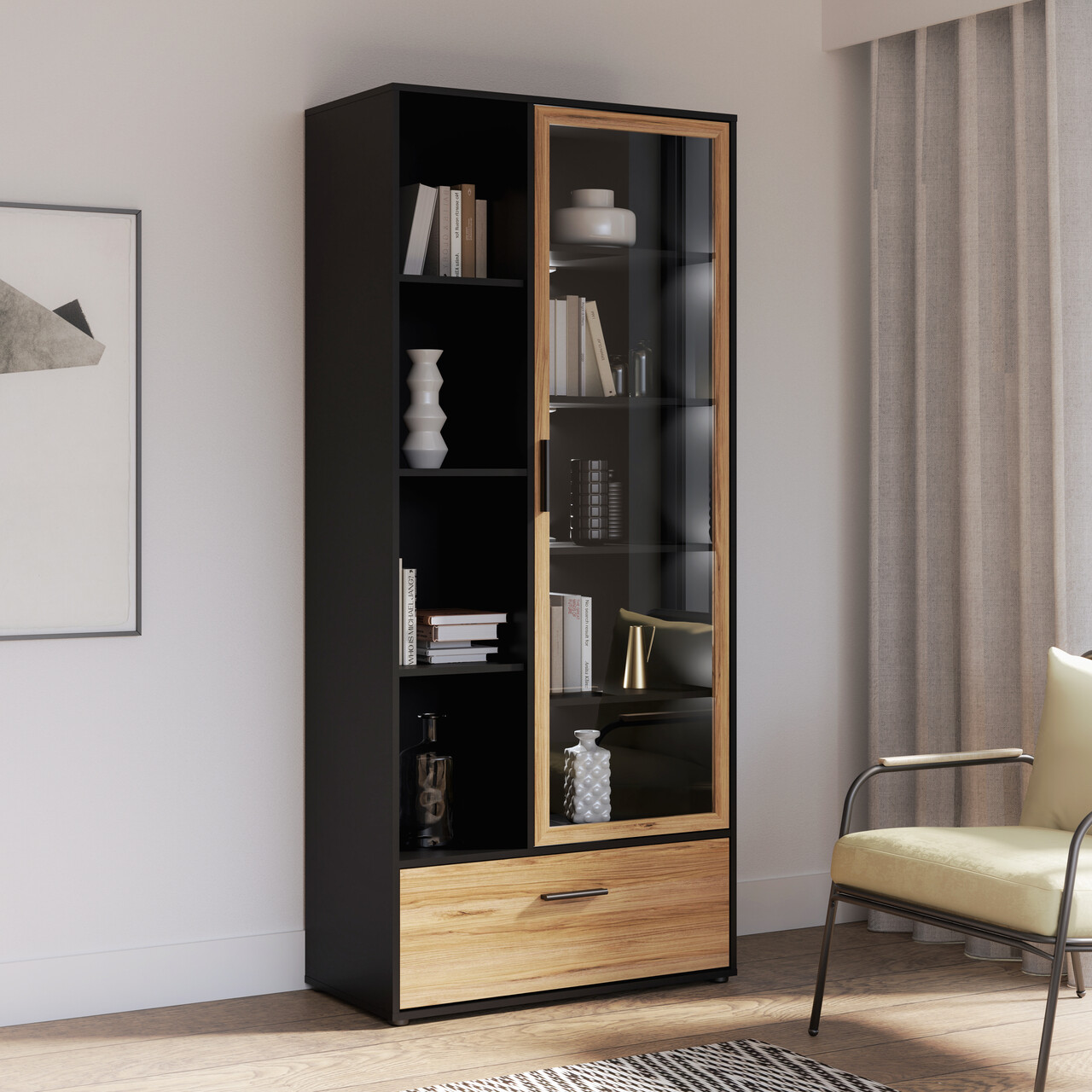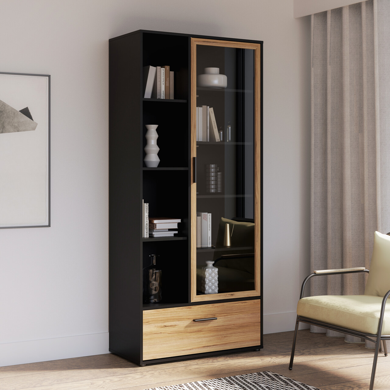 Dulap Meerlo, Bedora, 84.7x42x190.5 cm, PAL/plastic, negru/stejar