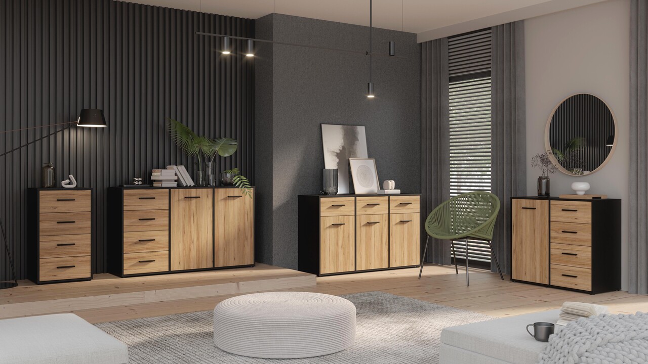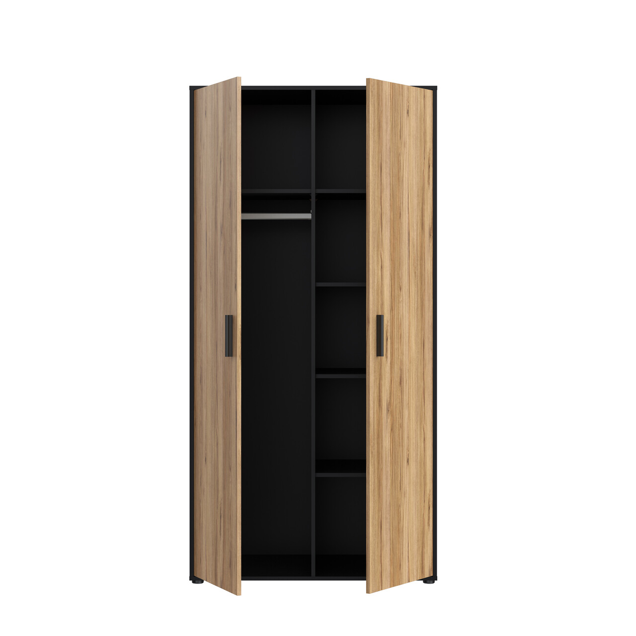 Dulap Meerlo, Bedora, 94.7x52.7x190.5 cm, PAL/plastic, negru/stejar