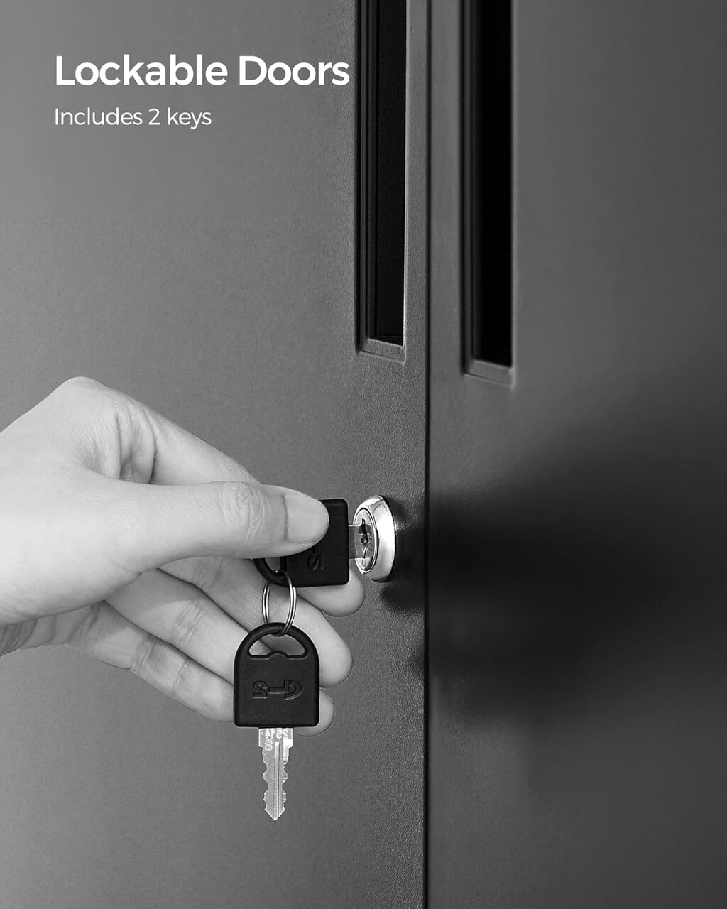 Incuietoare sigura: Usa are o incuietoare din otel de calitate, antirugina si rezistenta la uzura. Pachetul include 2 chei pentru siguranta obiectelor.