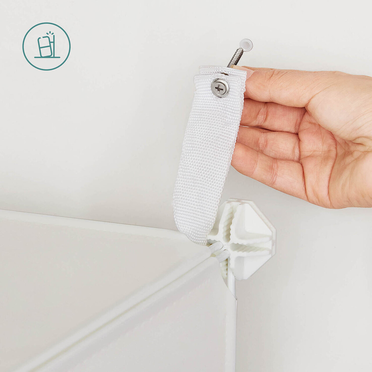 Rezistenta si stabilitate Panourile din plastic PP intarit, cadrul metalic si conectorii robusti asigura o structura solida. Fiecare cub suporta pana la 10 kg, iar kitul anti-rasturnare inclus ofera siguranta suplimentara.