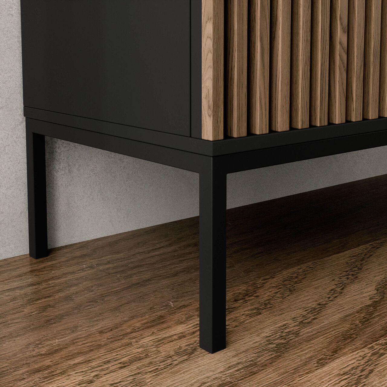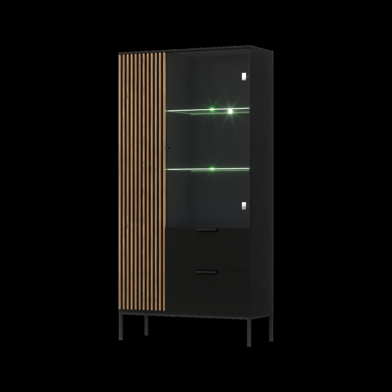 Dulapul multifunctional Meorati este o solutie eleganta si practica pentru depozitarea si expunerea obiectelor dumneavoastra. Proiectat cu atentie la detalii, acesta se potriveste in diverse interioare datorita stilului dar si dimensiunilor pe care le are. Dulapul este fabricat din placa robusta de 16 mm grosime, asigurand durabilitate si stabilitate. De asemenea, este echipat cu picioare din metal, inalte de 20 cm, asigurand stabilitate suplimentara si protejand podeaua de zgarieturi. Dulapul Meorati dispune de doua sertare spatioase finisate cu borduri ABS. Acest lucru nu numai ca adauga functionalitate, dar ii imbunatateste si estetica. Dulapul are doua usi, una avand fronturi frezate, adaugand eleganta si un caracter unic. A doua usa este realizata din sticla, permitandu-va sa expuneti articolele selectate si adaugand un sentiment de luminozitate spatiului. Interiorul dulapului include rafturi din sticla iluminate cu LED, oferind un afisaj impresionant si permitandu-va sa va prezentati articolele preferate in mod atractiv. Pe scurt, dulapul Meorati nu este doar o solutie practica de depozitare, ci si o piesa de mobilier care adauga eleganta si stil interiorului dumneavoastra. Cu constructia sa solida, sertarele spatioase, usile cu fronturi frezate si rafturile de sticla iluminate, acest dulap asigura atat functionalitate, cat si estetica.