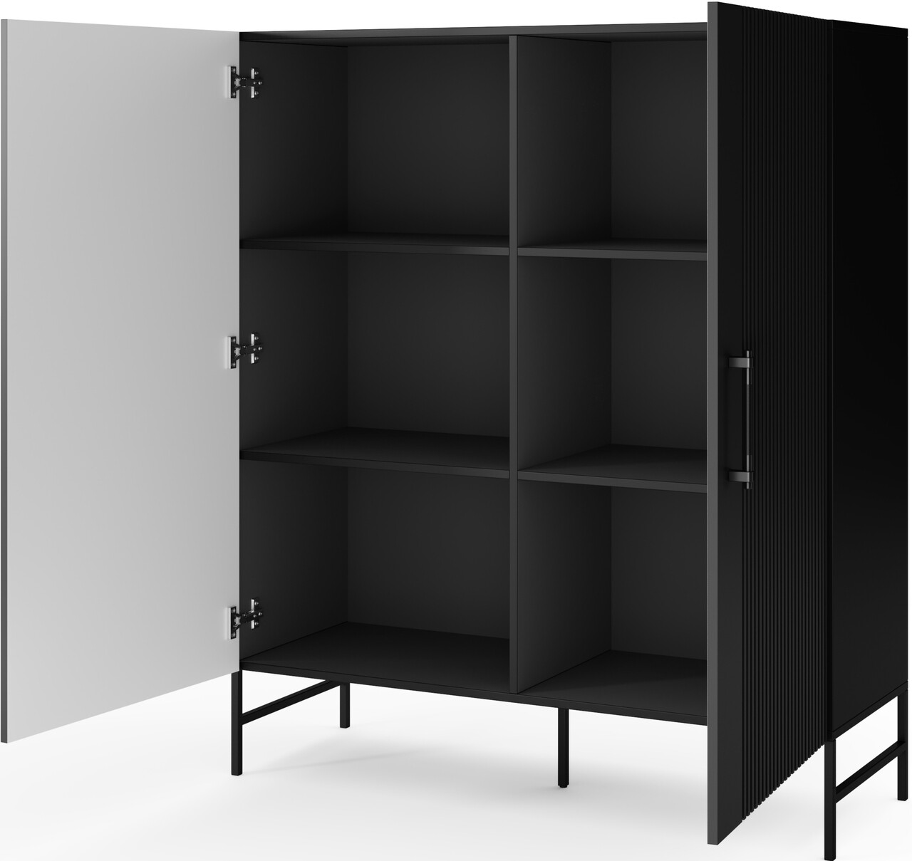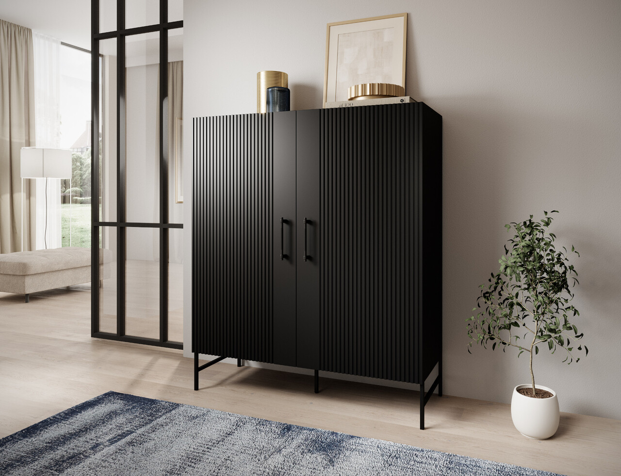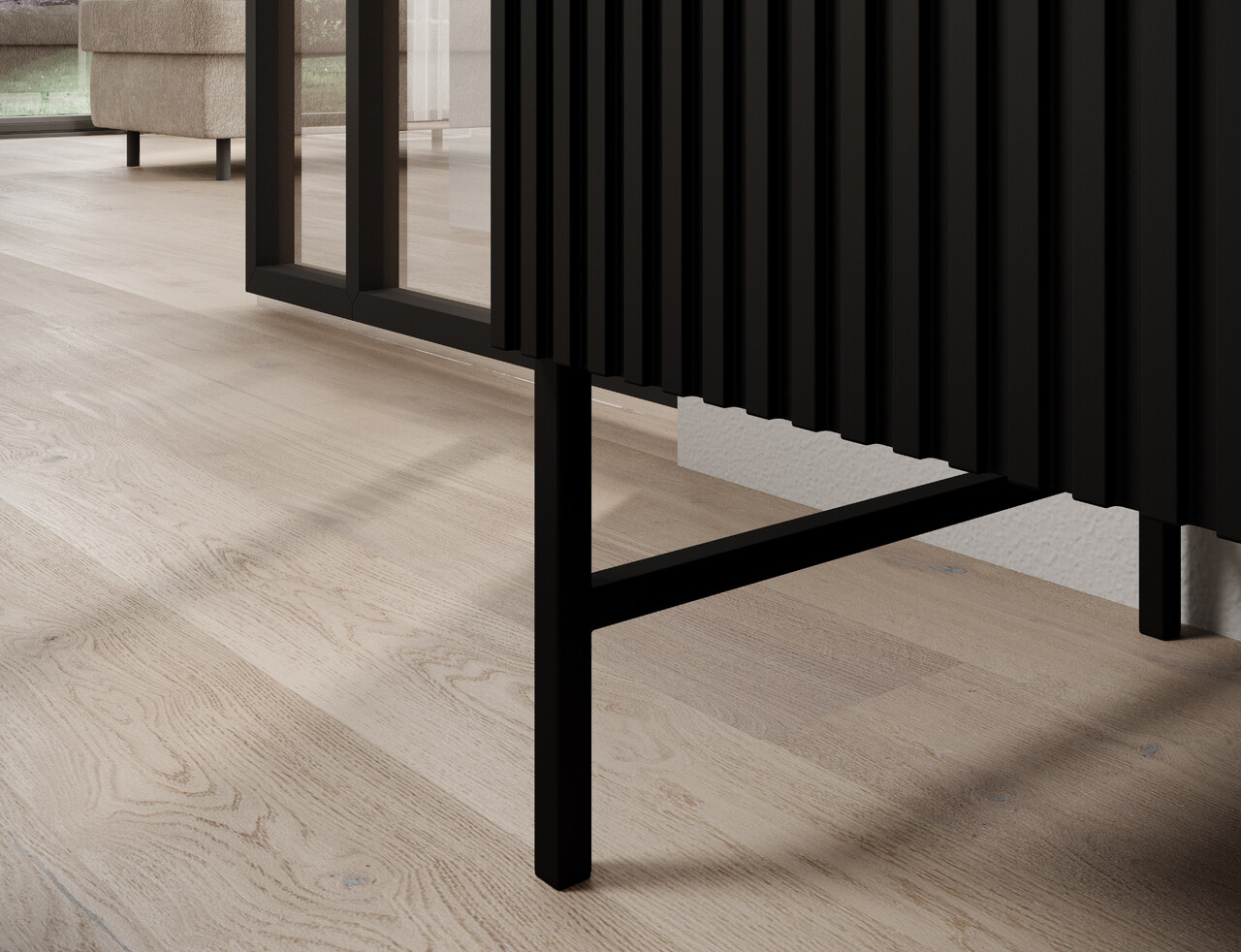 Dulapul muntifunctional Raftt este o combinatie perfecta intre designul industrial si functionalitate, ideal pentru interioare moderne. Constructia sa solida este realizata din placa aglomerata laminata iar fronturile frezate din MDF acoperit cu folie accentueaza caracterul loft al piesei de mobilier. Mobilierul este sustinut de picioare metalice negre vopsite electrostatic, asigurand stabilitate si un aspect usor. Manerele din aluminiu de culoare neagra se potrivesc perfect cu designul general, oferind dulapului un aspect elegant si minimalist. Usile batante sunt echipate cu balamale cu inchidere silentioasa, oferind un plus de confort in utilizarea zilnica. Un avantaj suplimentar este posibilitatea montarii pe perete, sporind siguranta. Dulapul Raftt se integreaza perfect in amenajarile de tip loft, industrial sau modern, adaugand stil si functionalitate interiorului.