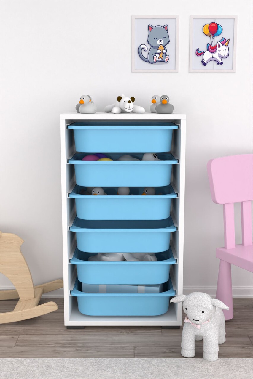 Dulap multifunctional, Estella, Bronz 6N, PAL, Alb/Albastru