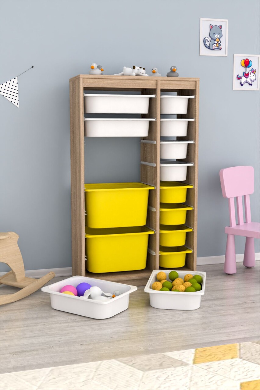 Dulap multifunctional, Estella, Montana Xs 2D4N8U, 69x112 cm, PAL, Sonomo Alb / Galben