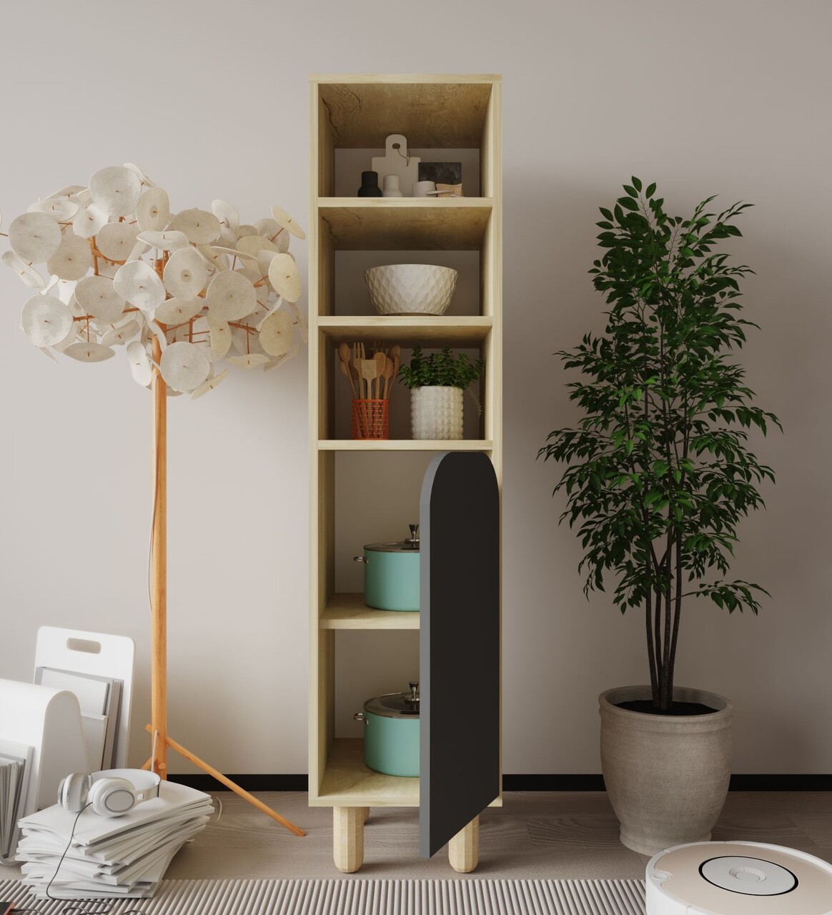 Dulap multifunctional, Hanah Home, Parma 1, 37x155x40 cm, PAL, Stejar safir / Antracit