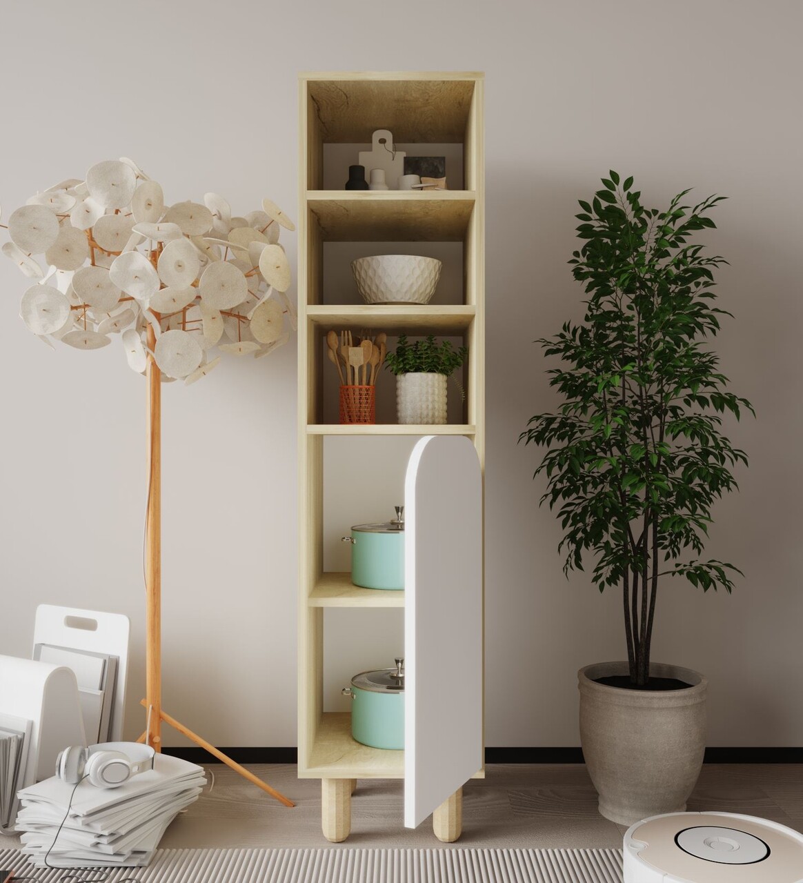 Dulap multifunctional, Hanah Home, Parma 1, 37x155x40 cm, PAL, Stejar Safir / Alb