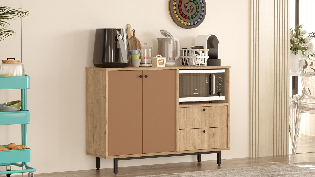 Dulap multifunctional, Locelso, RE2-SK, 120x85x35 cm, PAL, Stejar / Tigla Roșu