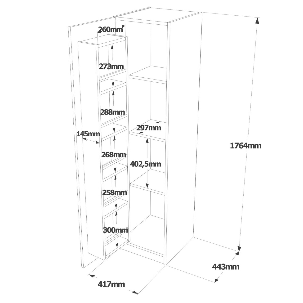 Dulap multifunctional, Locelso, VA1-KL, 41.7 x 176.4 x 44.3 cm, pal melaminat, nuc/negru