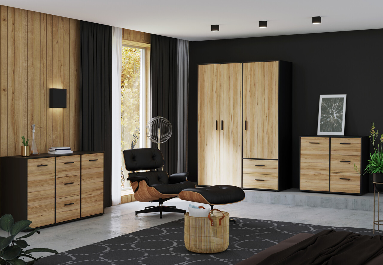 Dulap multifunctional Meerlo, Bedora, 94.7x42x123.5 cm, PAL/plastic, negru/stejar