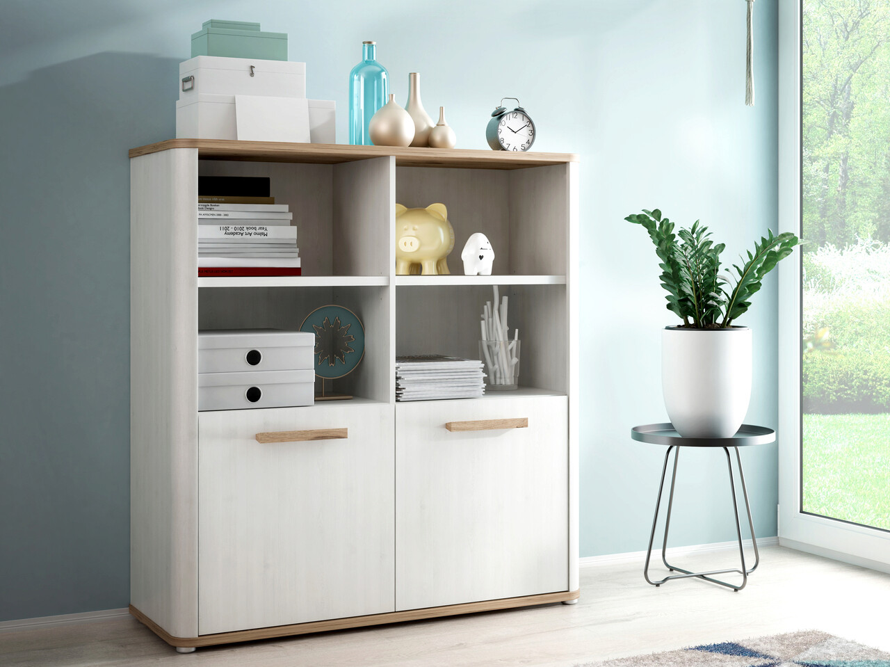 Dulap multifunctional Oude, Bedora, 110.3x41.3x118.3 cm, PAL/MDF/lemn, alb/stejar