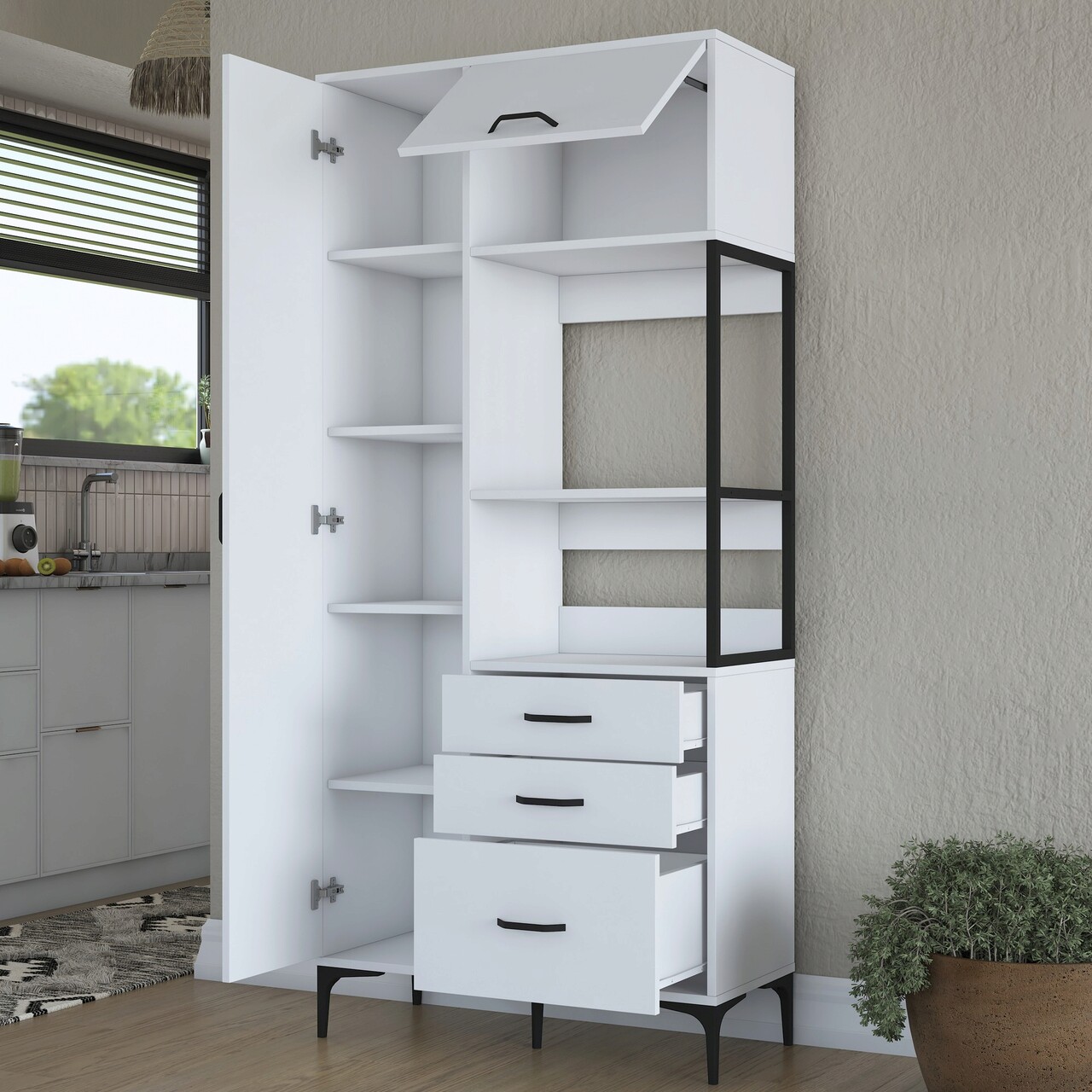 Dulap multifunctional, Rani, JE112, 90x198 cm, PAL, Alb