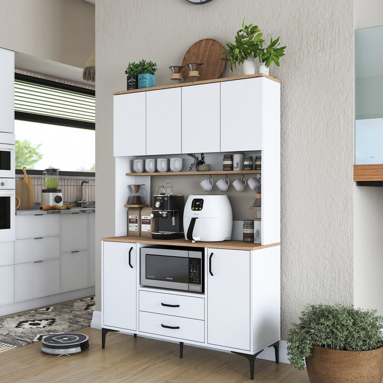 Dulap multifunctional, Rani, JE168, 120x184 cm, PAL, Alb/Maro