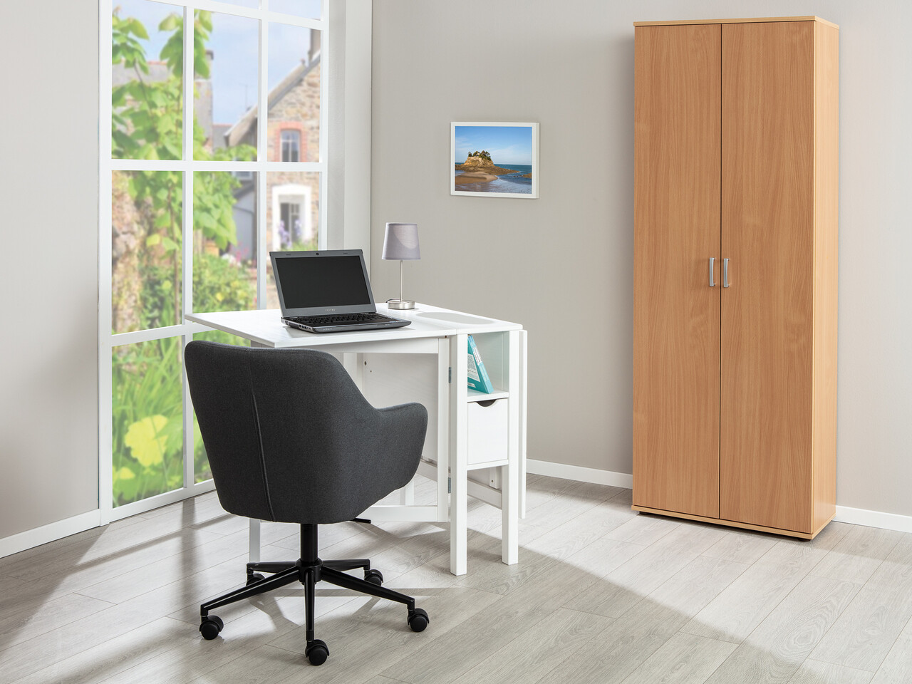 Dulap de dosare durabil cu aspect de fag, fabricat din material pe baza de lemn si acoperit cu melamina. Placa de presare plana acoperita cu plastic.