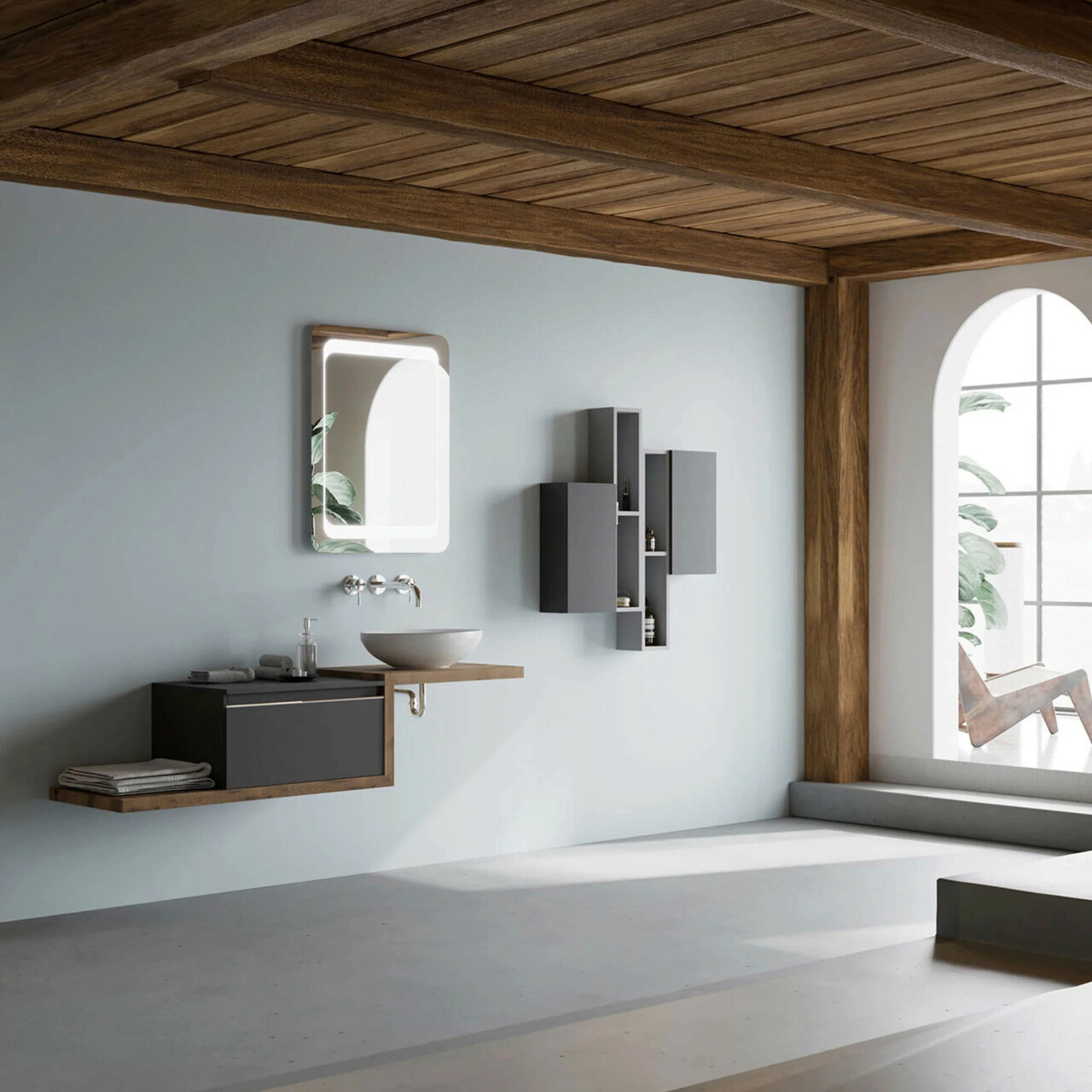 Realizat in totalitate din lemn laminat iar finisajul gri contribuie la aspectul frumos al acestuia. In interior veti gasi o polita din sticla pe care puteti sa puneti accesoriile utile unei igiene sanitare personale.