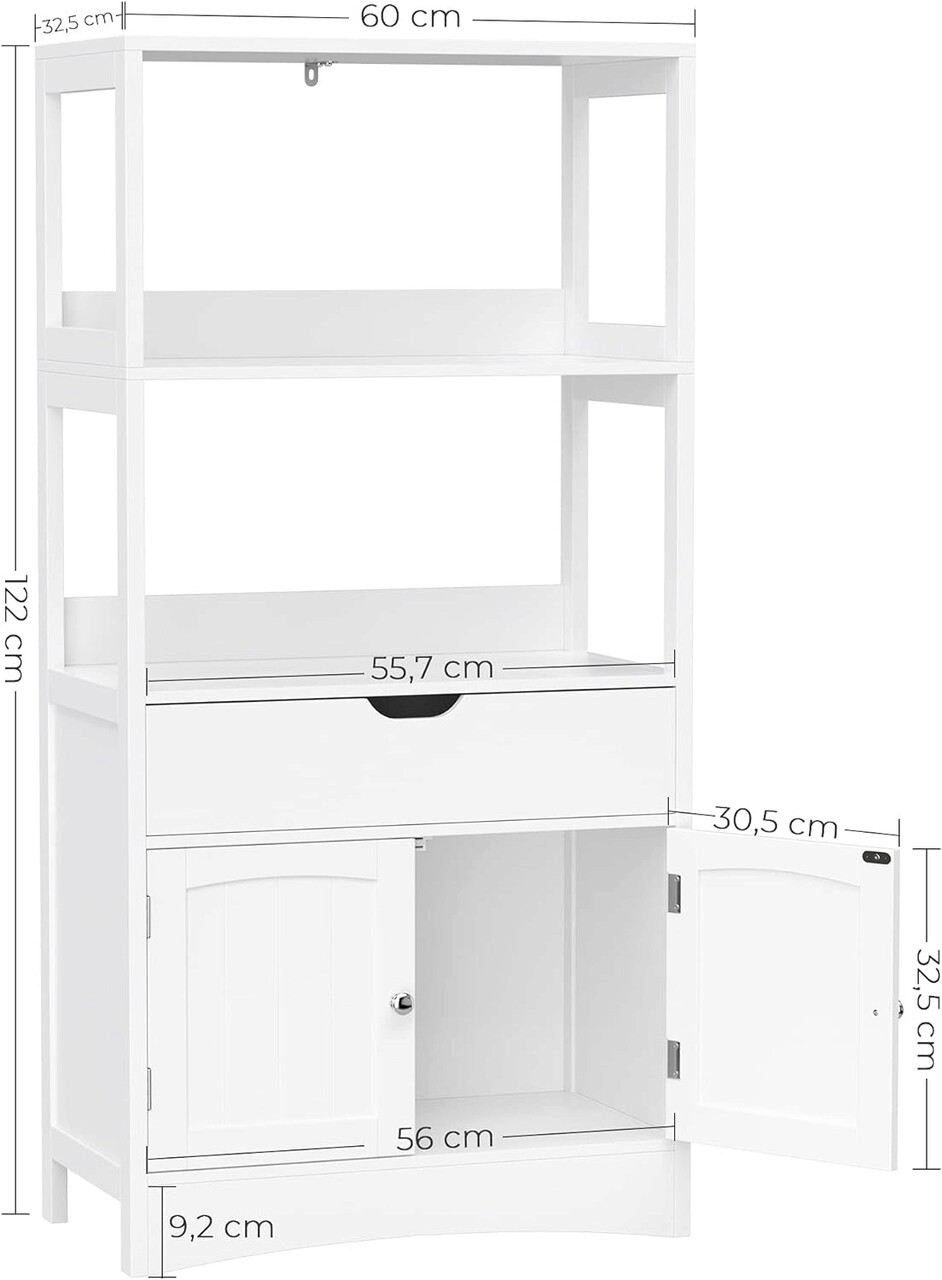 Dulap pentru baie / Bufet pentru baie, Vasagle, 60 x 32.5 x 122 cm, MDF, alb