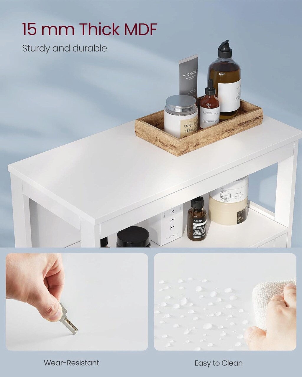 Dulap pentru baie cu 2 usi, Vasagle, 60 x 30 x 80 cm, MDF, alb