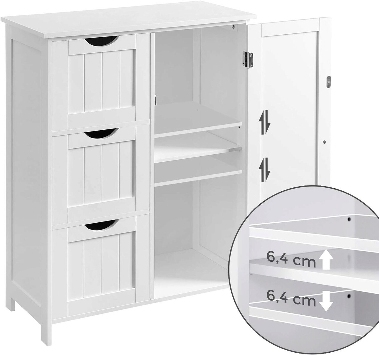 Dulap pentru baie cu 3 sertare si 1 usa, Vasagle, 60 x 30 x 81 cm, MDF, alb