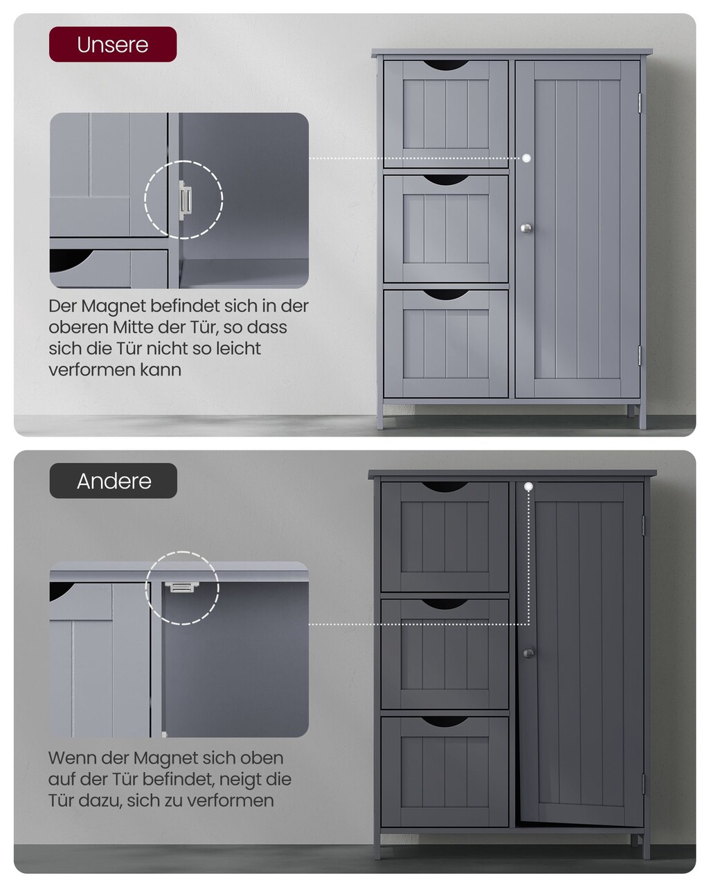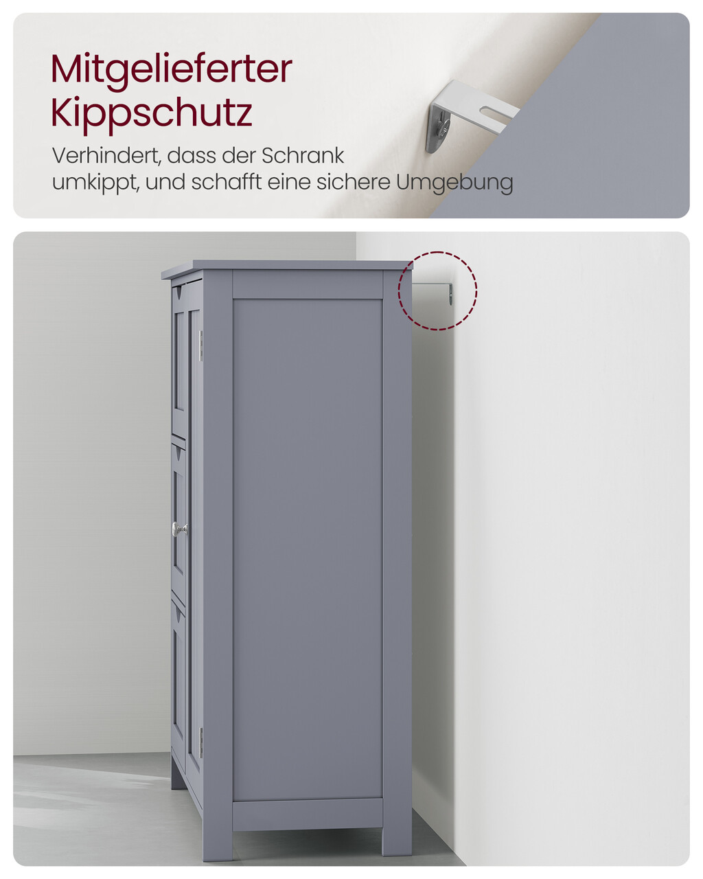 Dulap pentru baie cu 3 sertare, Vasagle, 60x30x80 cm, MDF, gri dove