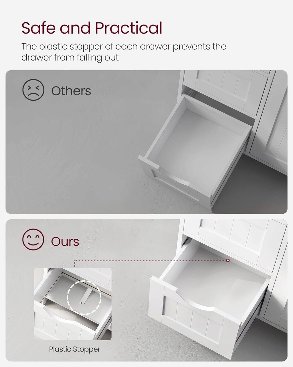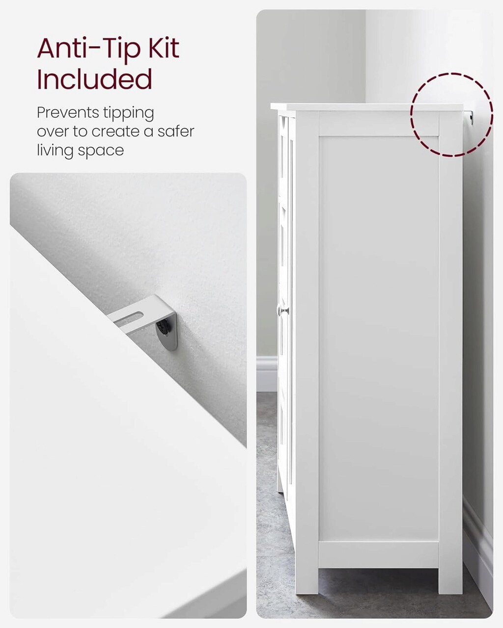 Stabilitatea inainte de toate: Realizat din MDF de inalta rezistenta si cu detalii delicate care sporesc stabilitatea, acest dulap promite o durata de viata lunga; este inclus un kit anti-inclinare, astfel incat nu trebuie sa va faceti griji cu privire la copiii care il rasturna.
